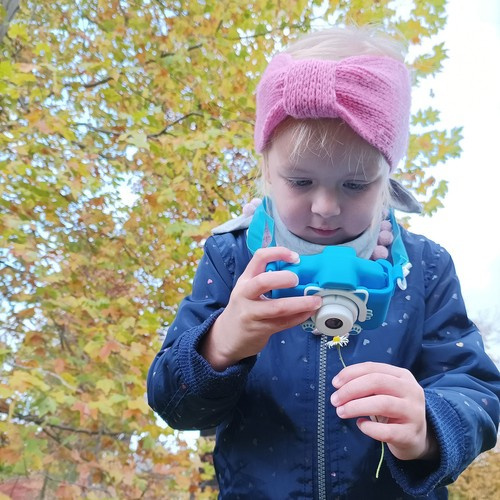 2palcový fotoaparát pro nejmenší! 2V1 – kromě focení umožňuje nahrávat i full HD se zvukem! Zařízení umožňuje na fotografie aplikovat různé filtry, jako jsou černobílé fotografie, sépie a různé verze negativu. Má schopnost pořizovat sériové fotografie Kromě toho existuje mnoho rámečků, které si oblíbí každé batole, jako jsou hračky, narozeninové balónky, medvídek se včelami, obláčky a mnoho dalších. Díky jednoduchému ovládání a vysoké kvalitě pořizování fotek a videí bude vaše dítě rozvíjet kreativitu a umělecké cítění a přitom se skvěle bavit.