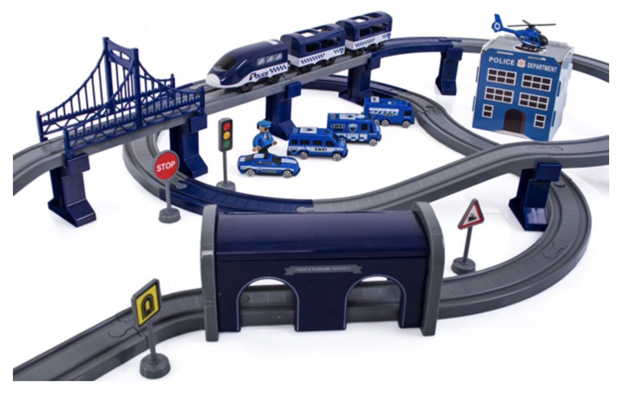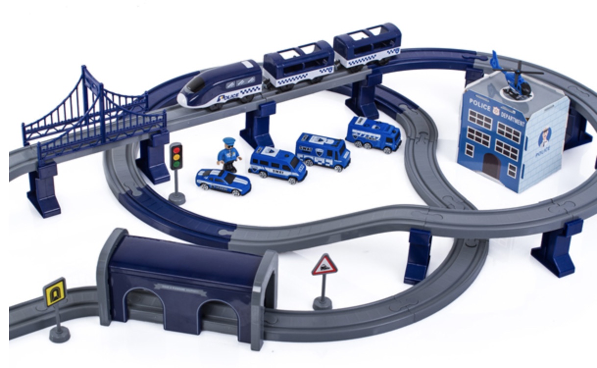 Vláčkodráha 2v1 je kombinací vláčkodráhy a policejní stanice. Vláčkodráha s bohatým příslušenstvím od firmy Aga4Kids. Celý popis