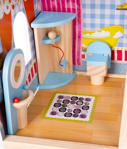 • SPECIFIKACE - barva: vícebarevná; materiál: dřevo; počet prvků v sadě: 15 + domeček; rozměry (délka / šířka / výška): 29/59 / 90cm; počet úrovní: 3; počet pokojů: 5 + balkon; hmotnost: 10 kg; hmotnost v balení: 11,25 kg