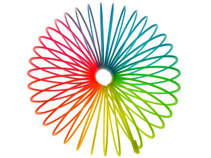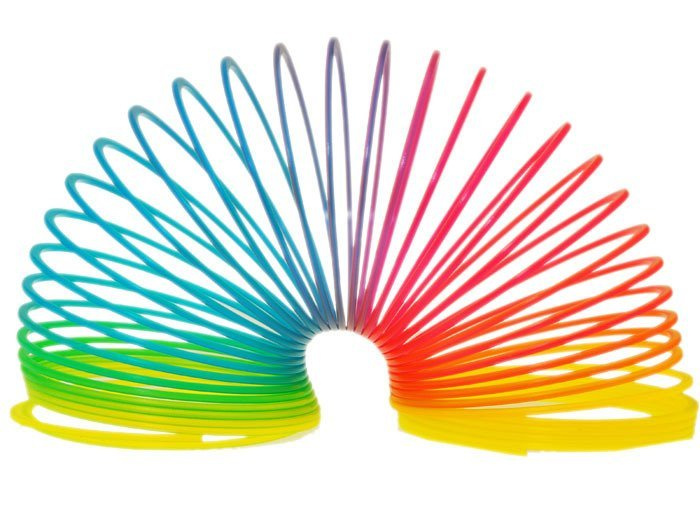 Duhová perleťová pružina o průměru cca. 7,5 cm a výška 6,5 cm zajistí spoustu zábavy při hře.
