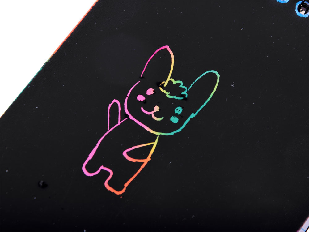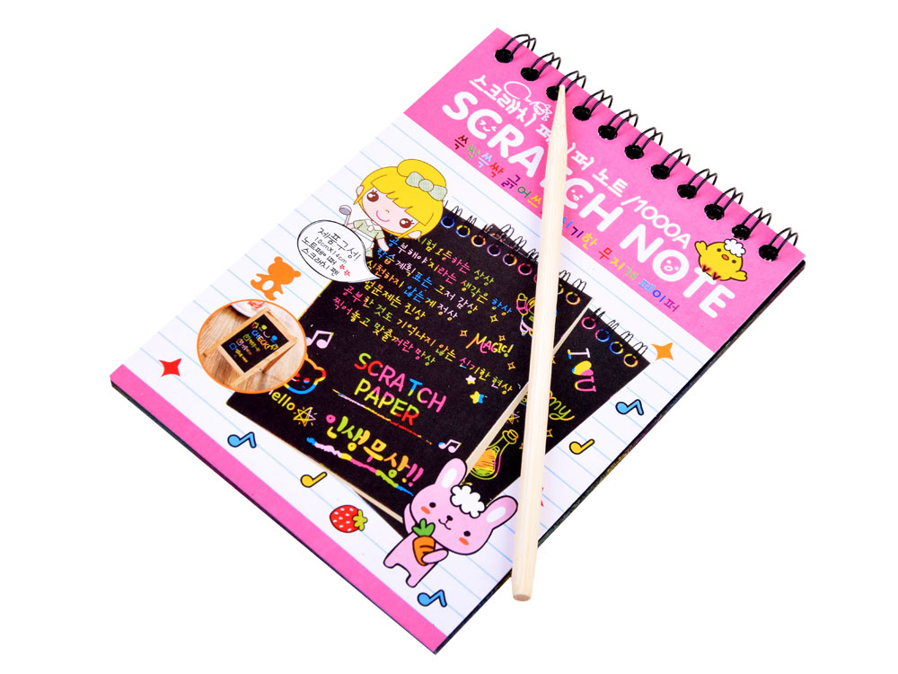 Barevný stírací blok v barvách duhy v praktickém sešitě A6 s 10 stranami zajistí každému dítěti kreativní zábavu. Zápisník s černými stránkami ukrývá kouzelné pozadí, stačí použít hůlku, stylus, vyškrábat vzor, kresbu a vytvořit okouzlující obrázek. Dětská kreativita nezná konce, takže hraní s kouzelným zápisníkem bude jistě zábava!