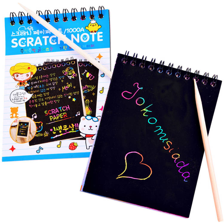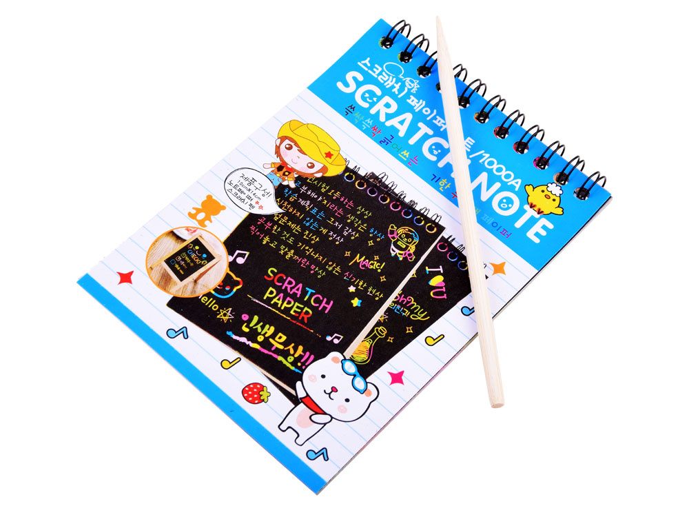 Barevný stírací blok v barvách duhy v praktickém sešitě A6 s 10 stranami zajistí každému dítěti kreativní zábavu. Zápisník s černými stránkami ukrývá kouzelné pozadí, stačí použít hůlku, stylus, vyškrábat vzor, kresbu a vytvořit okouzlující obrázek. Dětská kreativita nezná konce, takže hraní s kouzelným zápisníkem bude jistě zábava!