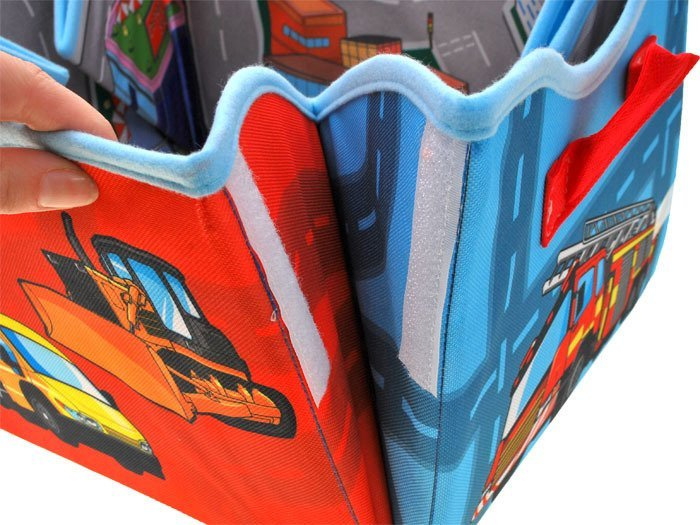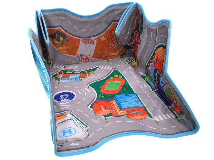 Krabice 2 v 1 není nic jiného než rozkládací podložka s ulicemi, na kterých si můžete hrát. Na podložce jsou ulice, kruhové objezdy a silnice, po kterých může dítě jezdit vlastními autíčky. Děti milují sbírání autíček, ale někdy mají problém udržet je na jednom místě, takže tento box s pevnými stěnami se bude skvěle hodit do nejednoho chlapeckého pokoje.