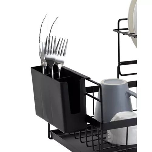 LOFT VZHLED - moderní, elegantní loftový vzhled udělá ze sušičky ozdobu vaší kuchyně! Sada obsahuje odnímatelný odkapávač na příbory, stačí jej zavěsit na boční příčky sušáku. Lze jej umístit kamkoli na odkapávač. Dno odkapávače příborů a hlavní zásobník na vodu jsou vyrobeny z černého odolného plastu. Univerzální černá barva navíc zapadne do každého interiéru.
