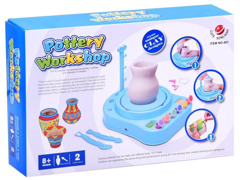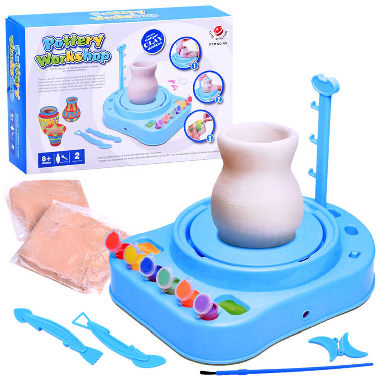 401, modrá Elektrický hrnčířský kruh, hrnčířský ateliér pro lití hlíny. Plastová hračka.Celý popis