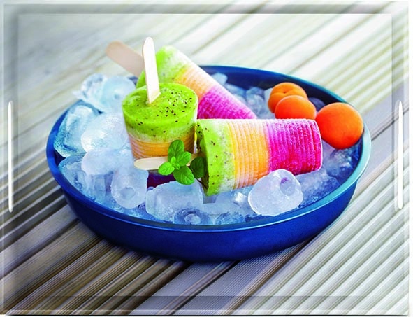 výborný pomocník při servírování doma i na zahradě vyrobeno z vysoce kvalitního plastu MF vlastnosti materiálu: neprůhledný, vysoký lesk, odolný proti poškrábání a pořezání stálobarevné, stohovatelné rozměry: 40 x 31 cm dekor: zmrzlina