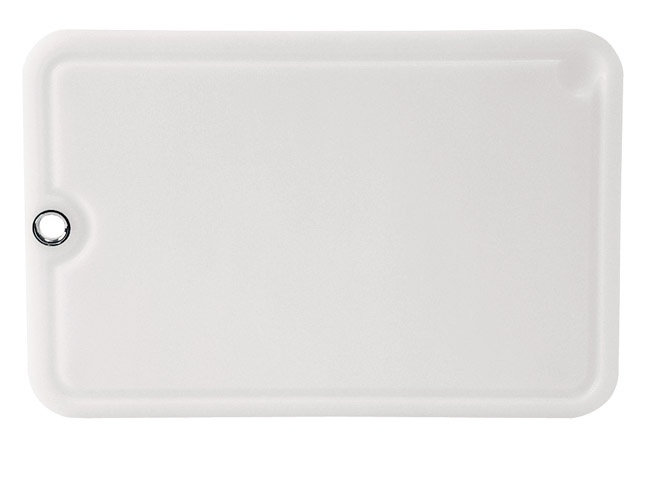 masivní plastové prkénko (36 x 24 cm) vysoce elastická struktura materiálu - bez zápachu a chuti odtok kapalin do drážky možno zavěsit na kuchyňský bar integrovaným okem vyrobeno v Německu 100% hygienické snadná údržba: vhodné do myčky na nádobí rozměry: 36 x 24 cm (d x š) materiál: plast barva: bílá