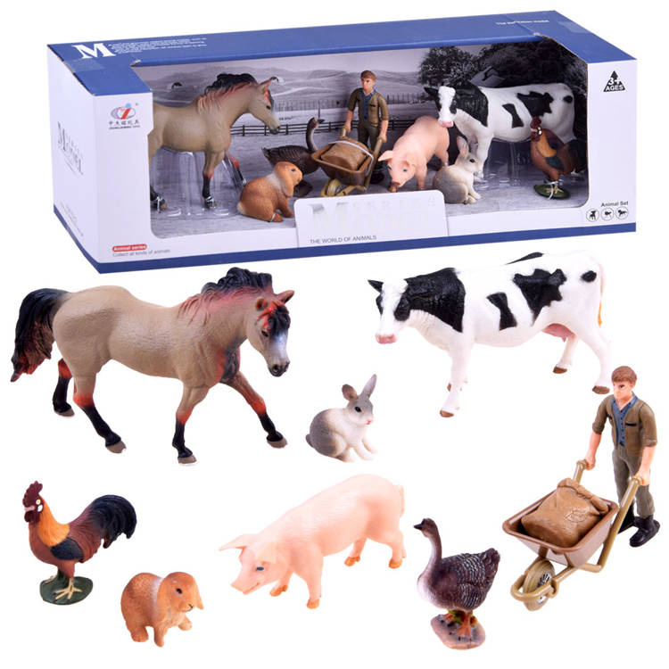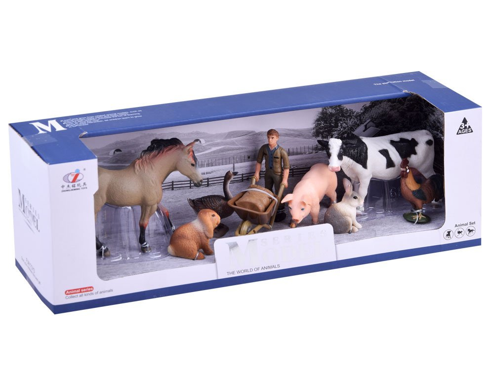Sada obsahuje m.in. prase, kráva, kůň, zajíc a další. Stejně jako na skutečné farmě na vše dohlíží postava farmáře.