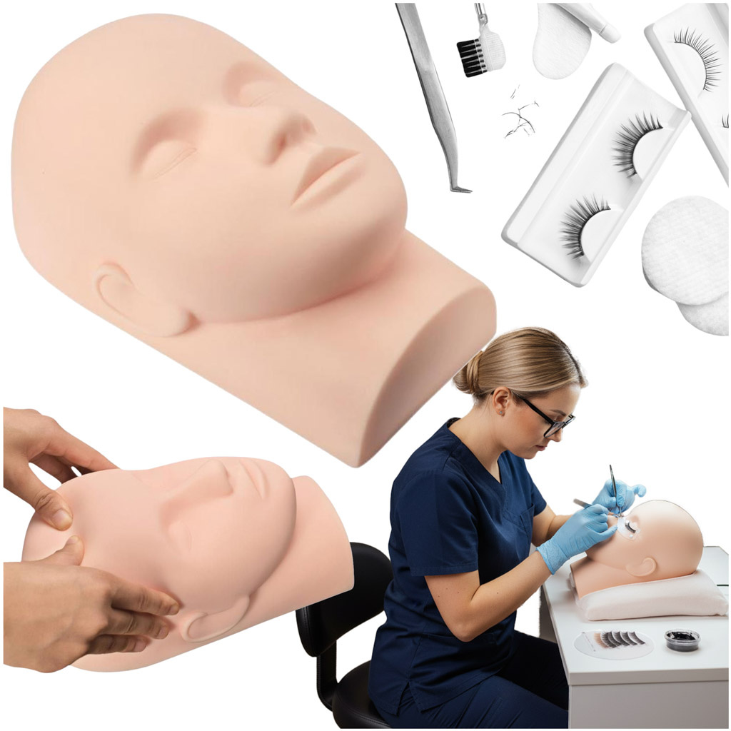 Profesionální tréninková hlava pro výuku aplikace umělých řas.