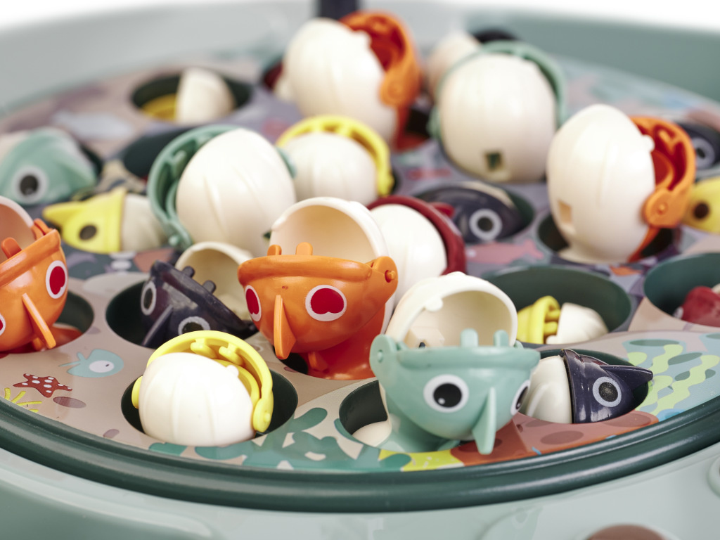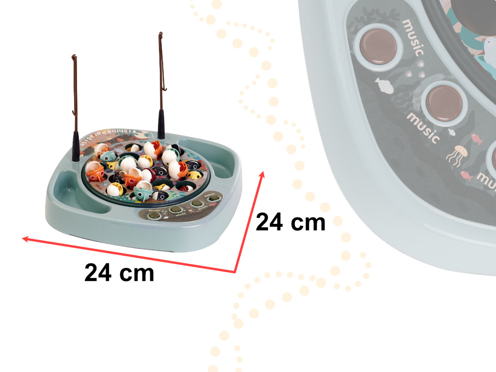 - Vítězem se stává ten, kdo uloví co nejvíce ryb na rybářský prut, který se vznáší - točí se po celé plošině.