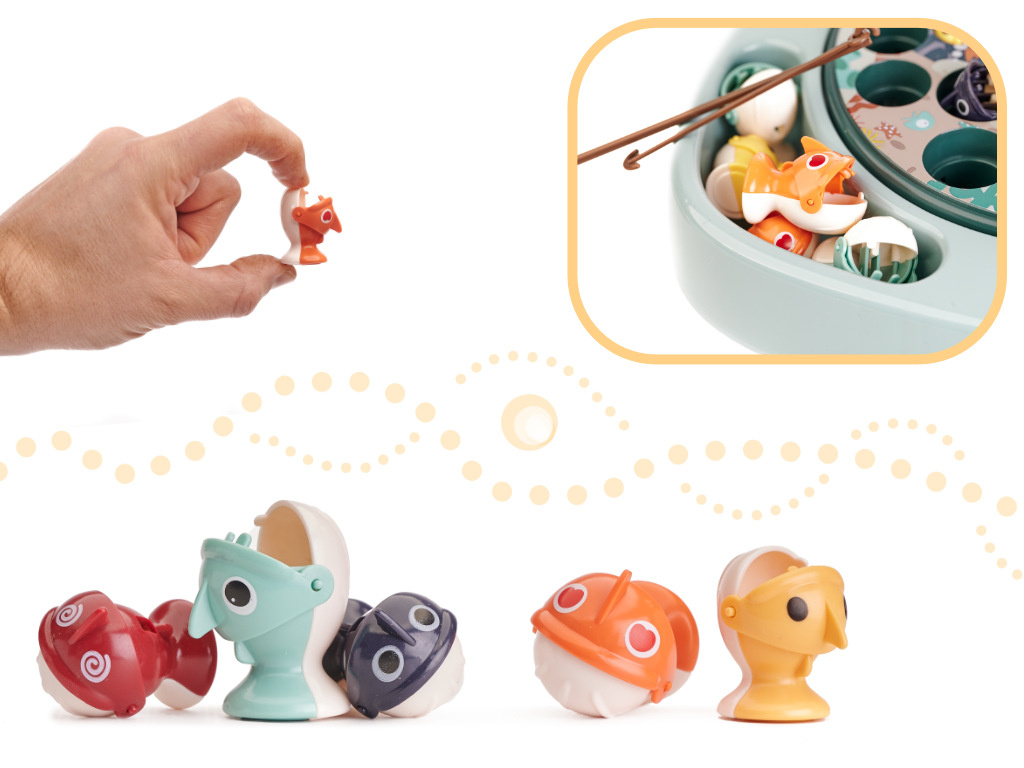 - Barevné nádoby na ulovené ryby jsou vyjímatelné.