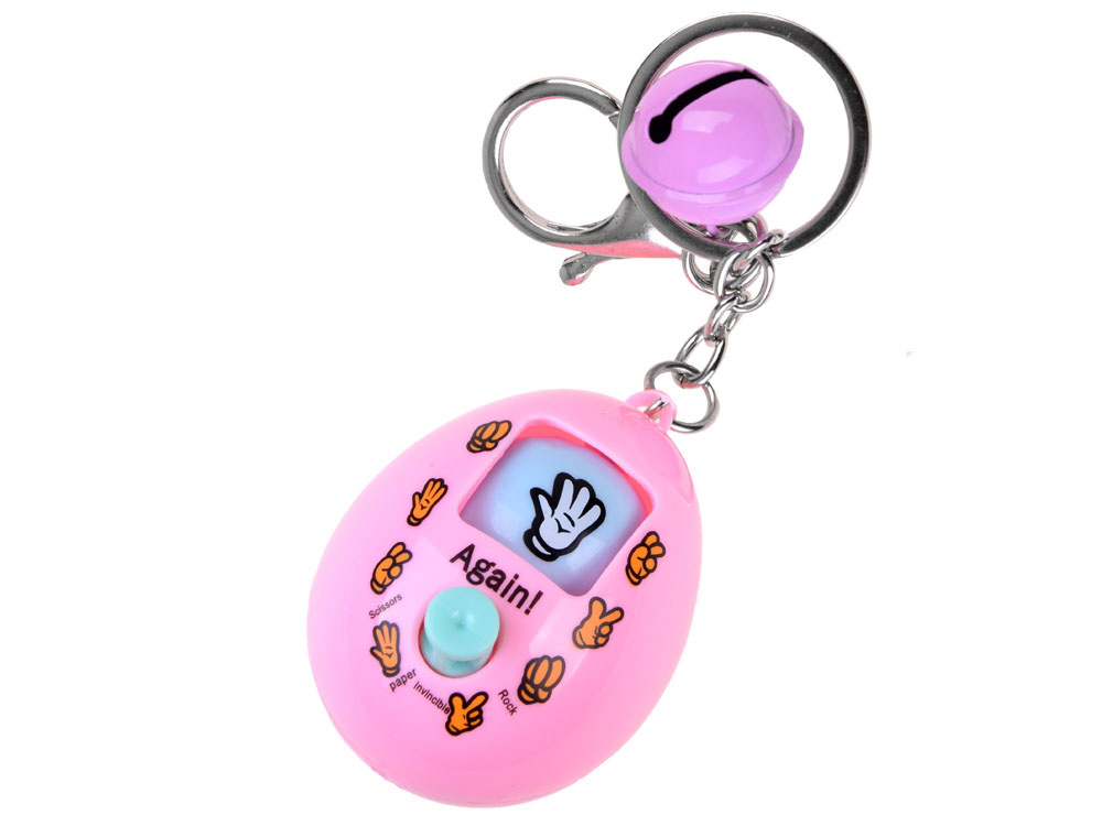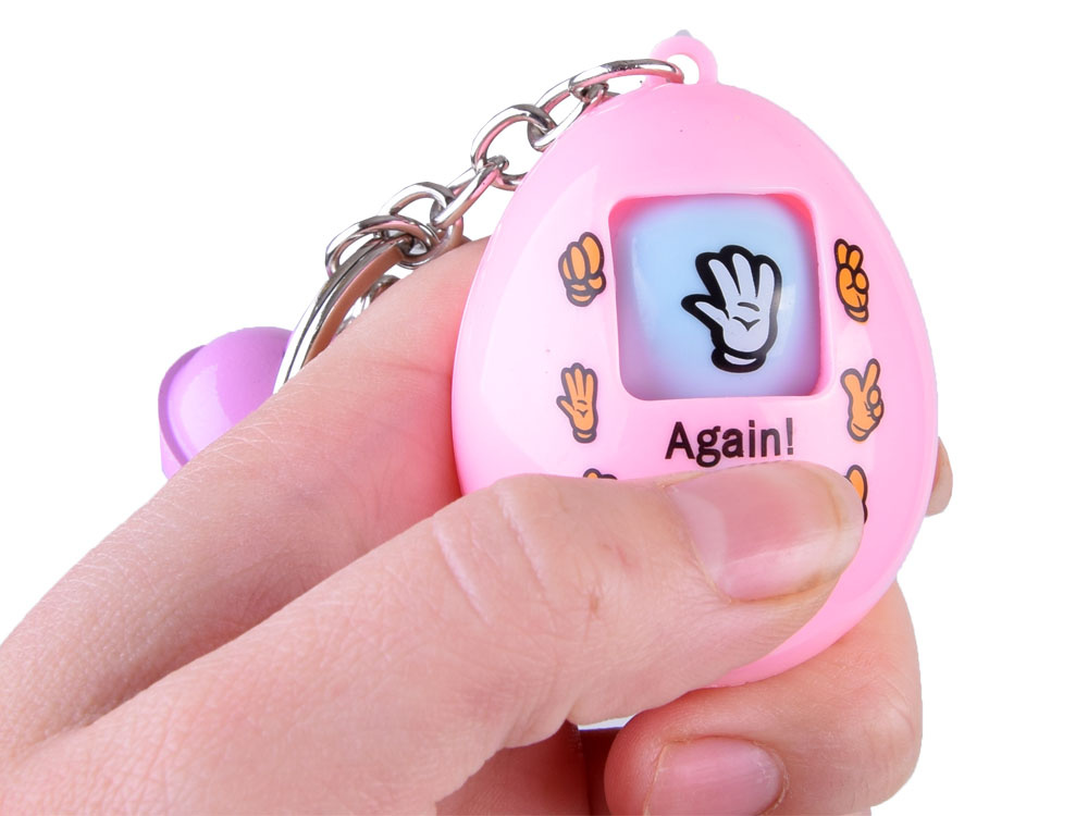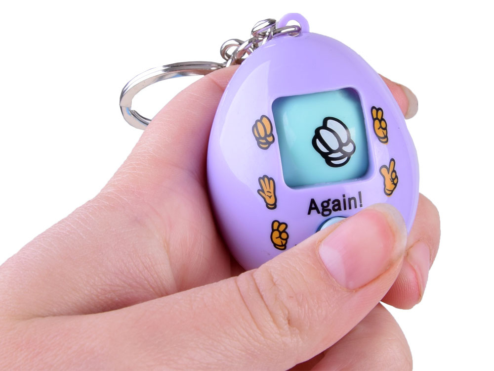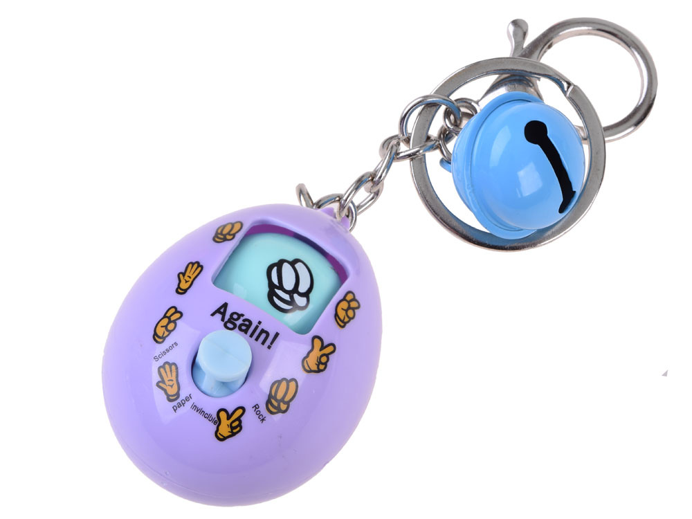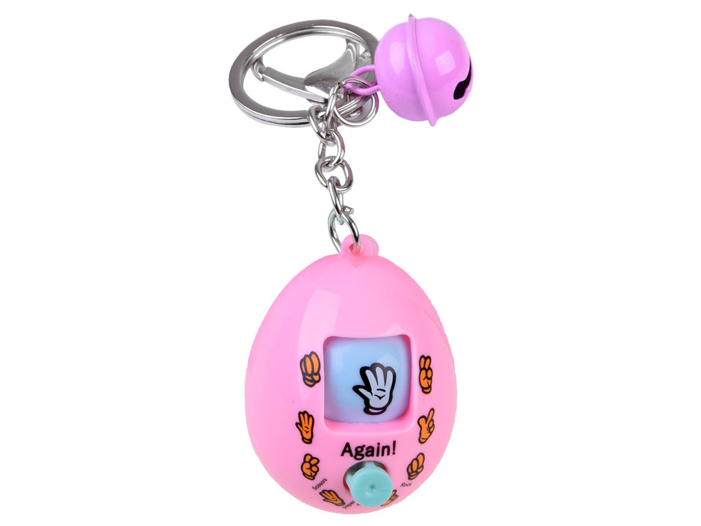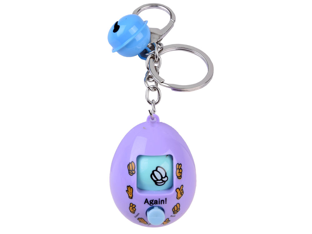 Barevný kroužek na klíče ve tvaru vajíčka s hrou se skvěle hodí na školní batohy a kabelky. V přívěsku je zabudována oblíbená hra "kámen, nůžky, papír", stačí stisknout tlačítko a otáčející se tlapka nám ukáže daný znak. Tento skvělý přívěsek se vám bude hodit při čekání na autobus nebo při sázce s kamarádem.