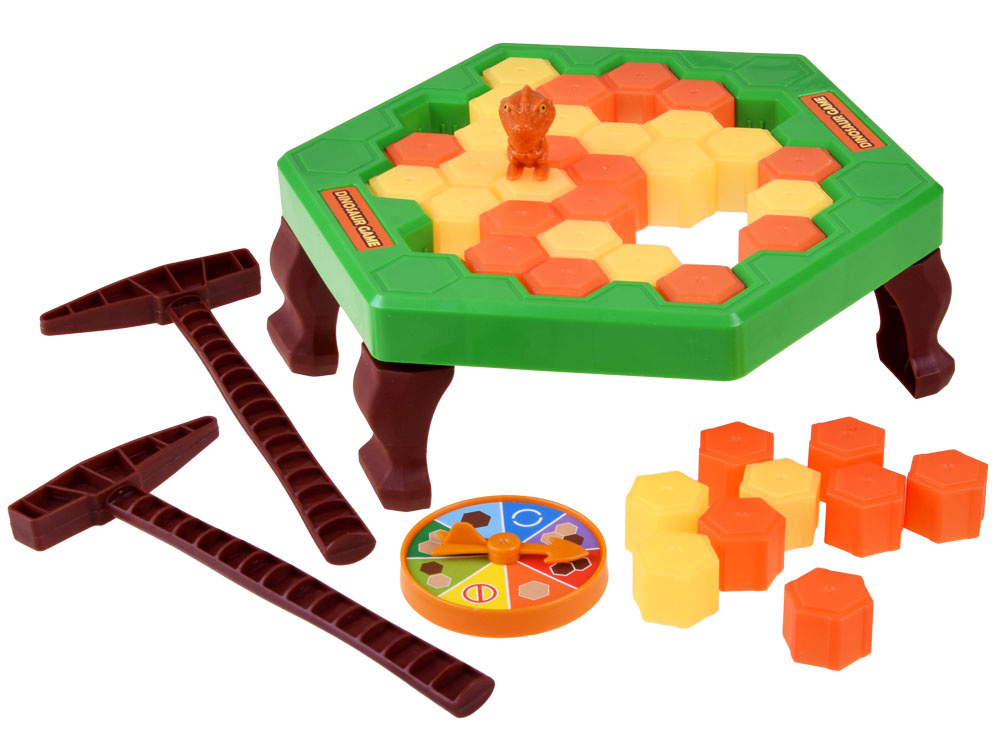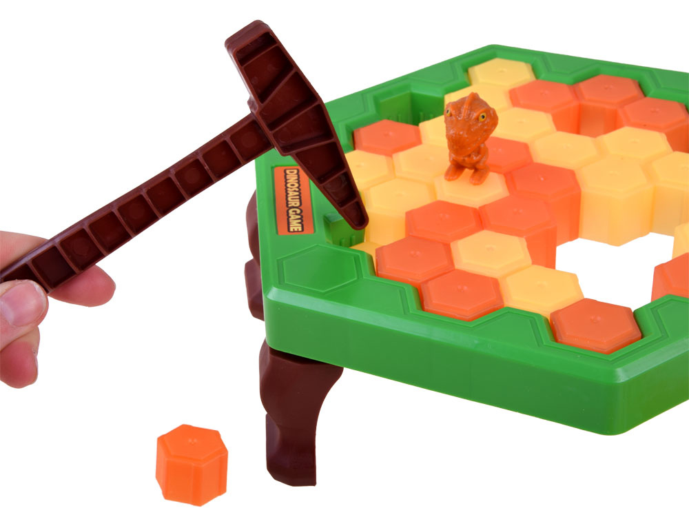 Hráči se střídají v otáčení kola a nápověda určuje, kolik a jaké barvy kostek mají shodit. Pokud se ukazatel zastaví na žlutém poli, odbočku vynecháme, pokud na modrém poli, musíme odbočit znovu. V další fázi je třeba učinit důležité rozhodnutí. Kterou kostku srazit, abyste nesrazili dinosaura? S každým dalším kolem je rozhodování obtížnější. Kladivo do ruky! Je čas srazit vybranou kostku...Sledujte list a rozhodněte se, jak silně udeřit. Prohrává ten, kdo způsobí, že se prostěradlo s dinosaurem zhroutí.