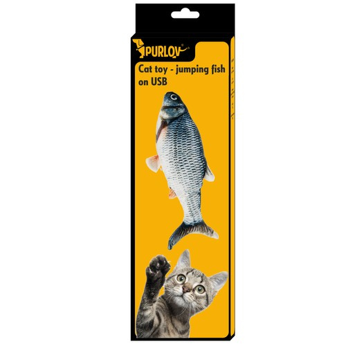 Skákací ryba - perfektní hračka pro každou kočku. Vyrobeno z měkkého materiálu bezpečného pro zvířata (bavlna a plyš), napodobující tvar, hmotnost a rozměry skutečné ryby. Hračka je napájena vestavěnou baterií, která se dobíjí poté, co se dostane do skrytého USB portu uvnitř hračky.