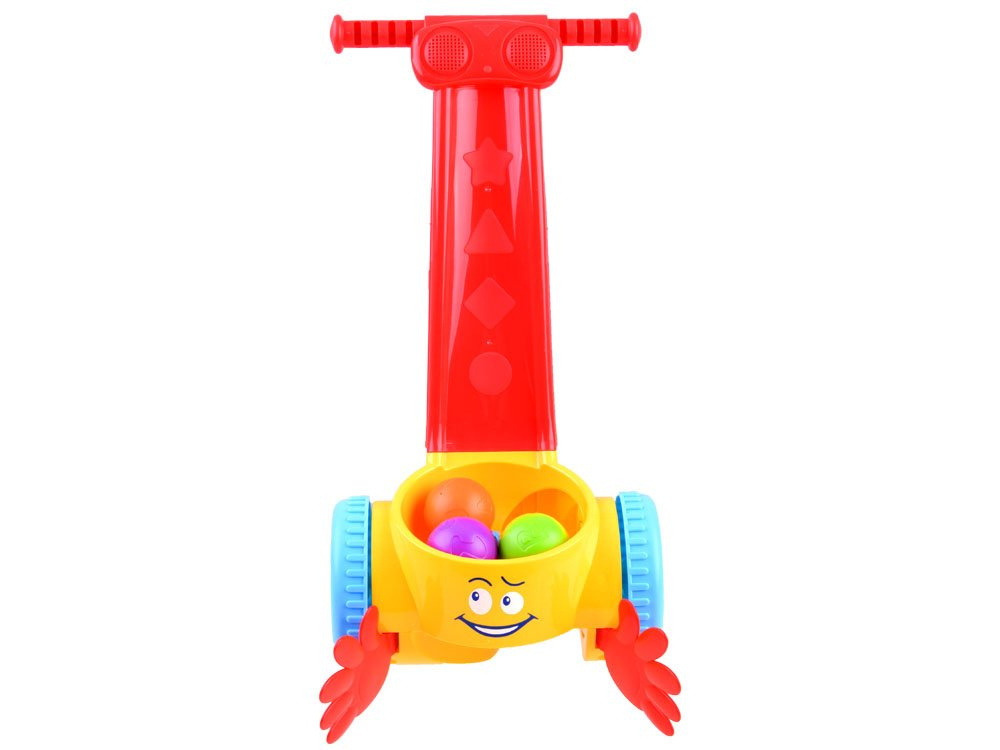 Veselý chytač míčků je návrh pro batole, které už s jistotou dělá první krůčky. Hračka s tlapkami "polyká míčky", které potkáte na cestě v rytmu veselých zvuků, hudby. Hračka s drzým smajlíkem je celá vyrobena z plastu v atraktivních barvách. Sada obsahuje tři plastové míčky.