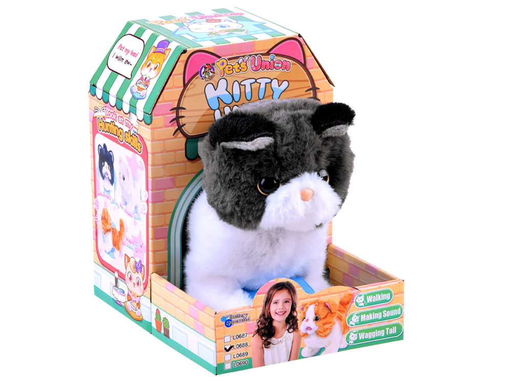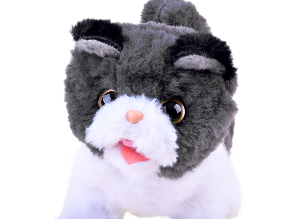 Plyšová kočička je volbou pro každé dítě, které se chce a potřebuje o takového drobečka starat. Malá kočička je vycpaná plyšovou kožešinou , má plastové oči, nos. Kocour chodí dopředu, pohybuje hlavou, ocasem a při vydávání zvuku pohybuje čenichem. nádherný maskot, o kterého se skvěle pečuje. Plyšová kočička se může stát nejlepším přítelem dítěte. Téměř každé dítě má období, kdy cítí velkou potřebu skutečného domácího mazlíčka. Je ale těžké splnit dětem všechna přání, zvlášť když sní o opravdovém domácím mazlíčkovi a my nemáme možnost ho mít. Proto, abychom alespoň z poloviny a minimálně splnili jejich přání, nabízíme vám tuto rozkošnou plyšovou kočku. Rozkošná plyšová kočička potěší každého fanouška milovaných domácích mazlíčků.
