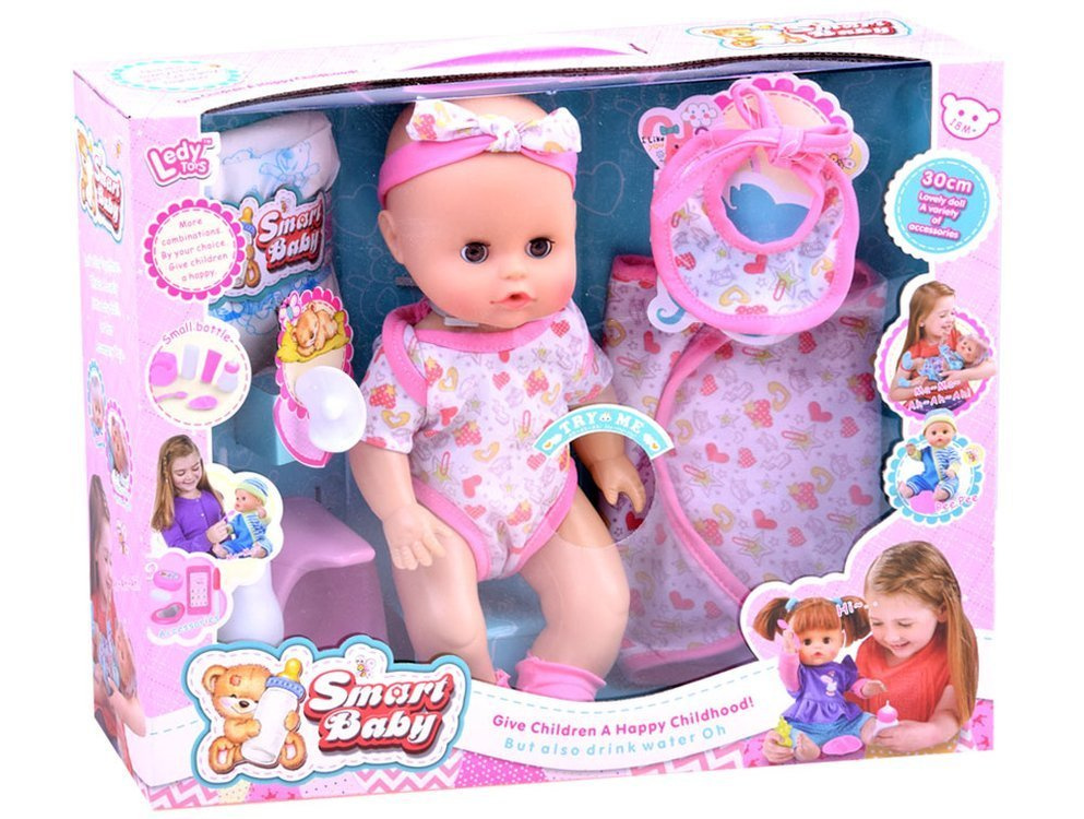 Trup panenky je vyroben z plastu a má pouze gumovou hlavu. Ruce a nohy panenky jsou pohyblivé a oči se zavírají, takže panenka může spát. Panenka má také funkci zavlažování, takže může i čůrat. Panenka je oblečená do body, čelenky a ponožek. Během krmení ji můžete zabalit do deky a nosit bryndák. Součástí výbavy jsou také dupačky a nočník pro panenku.