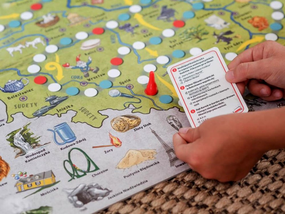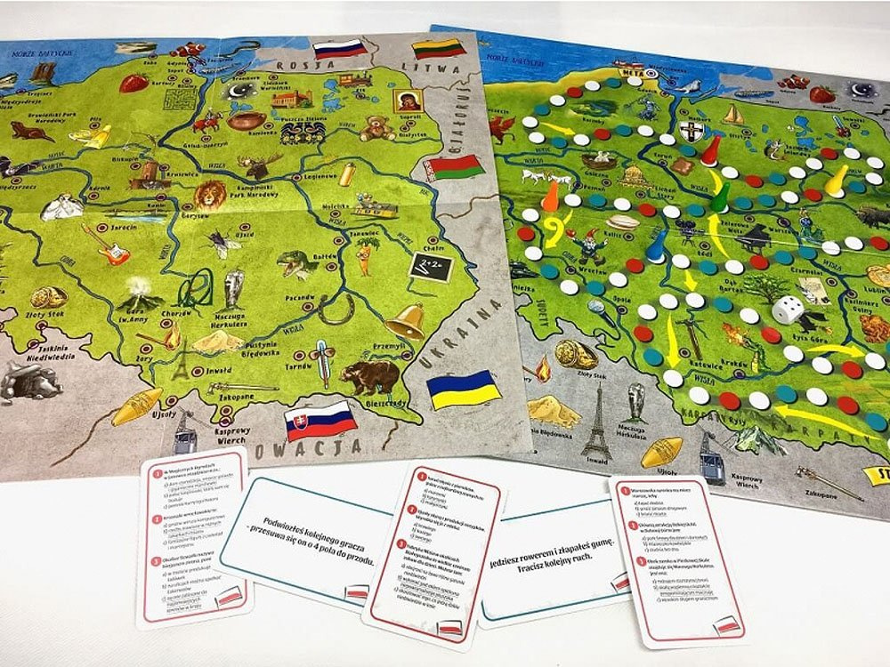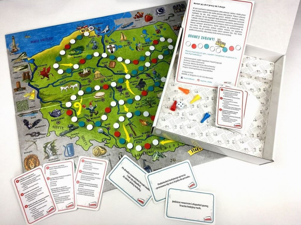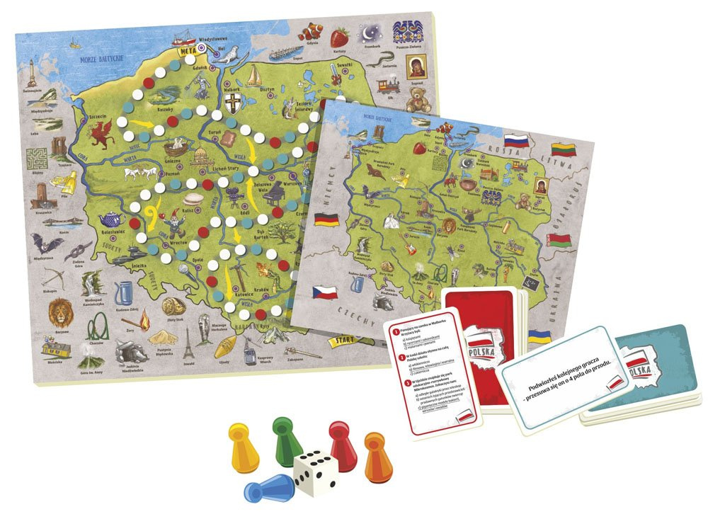 V tomto závodě rozhoduje o vítězi postřeh, reflexy, štěstí a znalost polské přírody, historie a geografie. Díky různým herním možnostem lze zábavu přizpůsobit věku a temperamentu hráčů. Popisy mnoha památek a zajímavostí vás jistě inspirují ke společnému rodinnému cestování - a to nejen s prstem na mapě!V průběhu hry se hráči seznámí s tajemstvím polských měst, jejich historií, památkami a zajímavostmi o různých regionech země.
