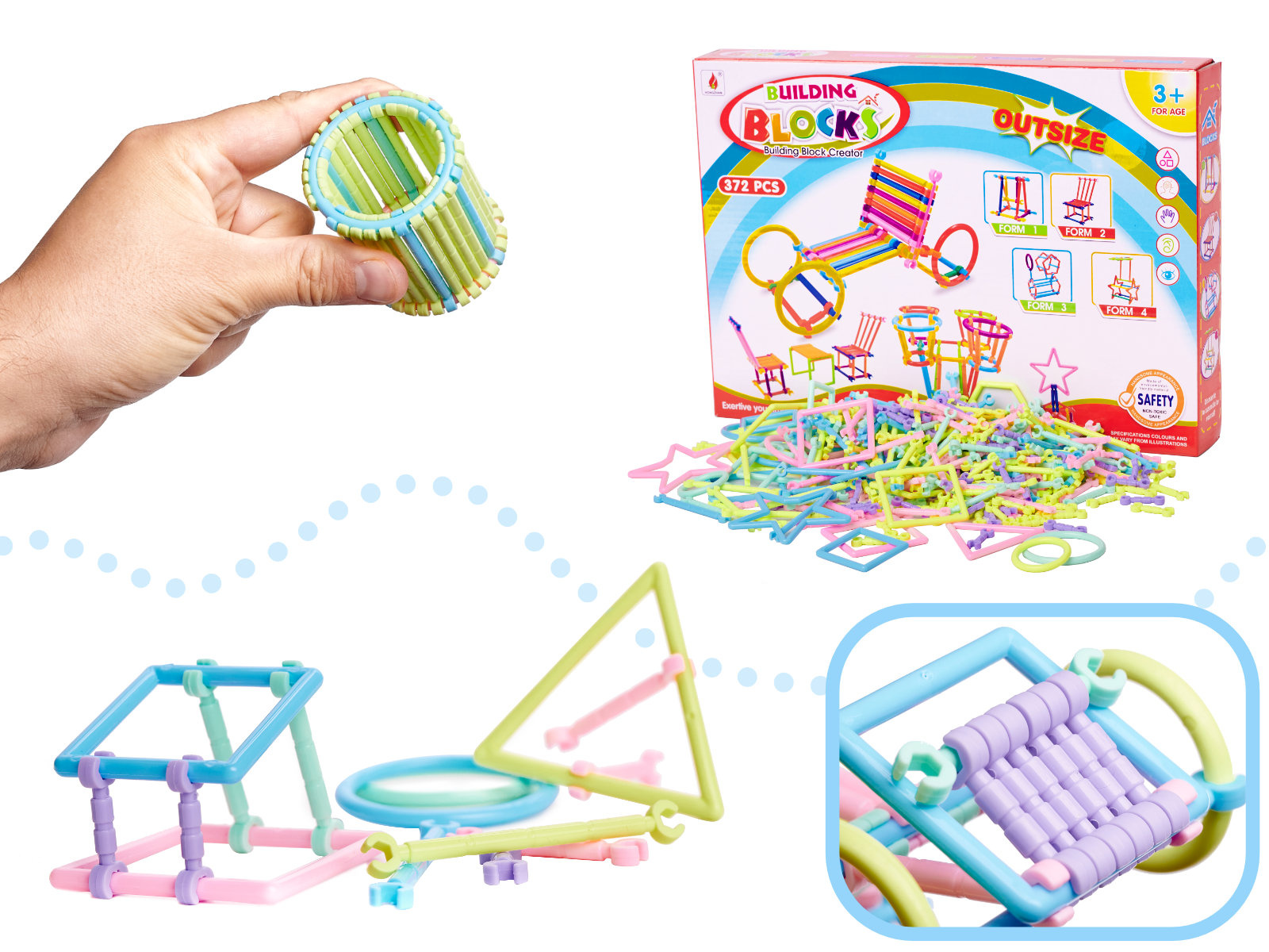 Sada různě tvarovaných kostek z plastu. Kostky lze mezi sebou libovolně kombinovat pomocí tyček s kleštičkami, takže počet možných projektů je omezen pouze počtem kostek a fantazií stavitele. Balení: 25x34x4,5 cmCelý popis