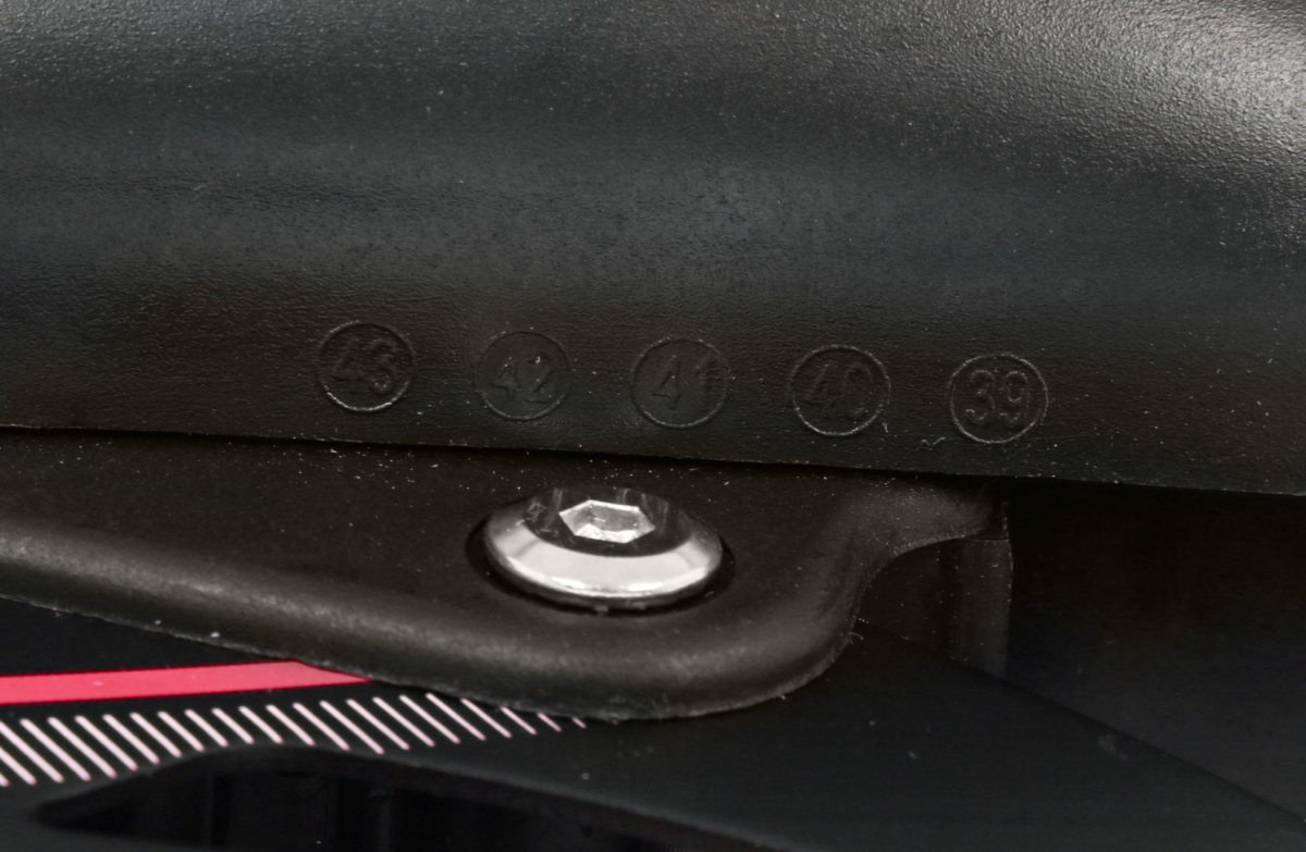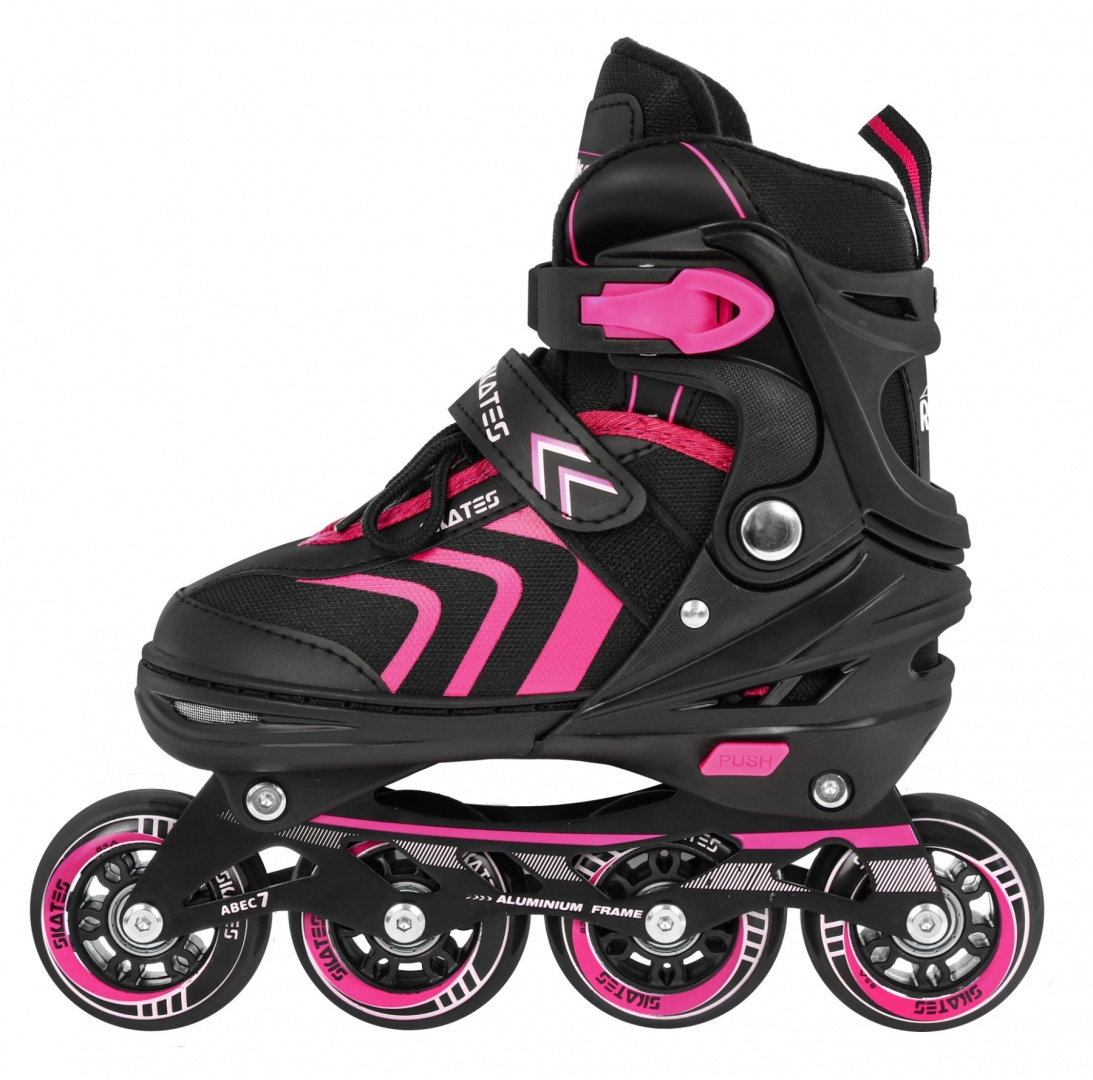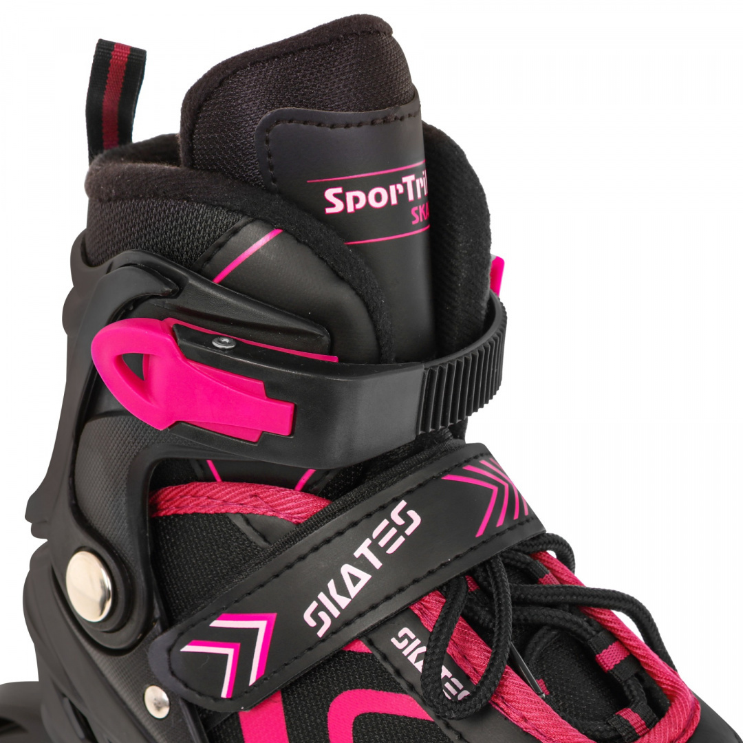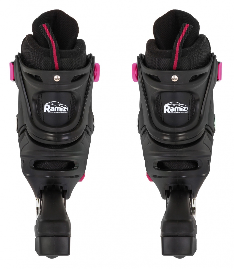 | Boty | - 5stupňový systém nastavení velikosti stisknutím tlačítka (39-43) - vnitřní délka boty od 24 cm do 27,5 cm, - polotvrdá konstrukce zajišťující pružnost boty a bezpečnost kotníku - třísekvenční zapínání: - tkaničky - pásek na suchý zip - přezka (nastavení + ochrana proti otevření) - brzda v pravé brusli - ventilační systém - polopropustná membrána - tvarovaná stélka - stélka brusle vyplněná měkkou pěnou EVA pokrytá vnější vrstvou látky Velvet |