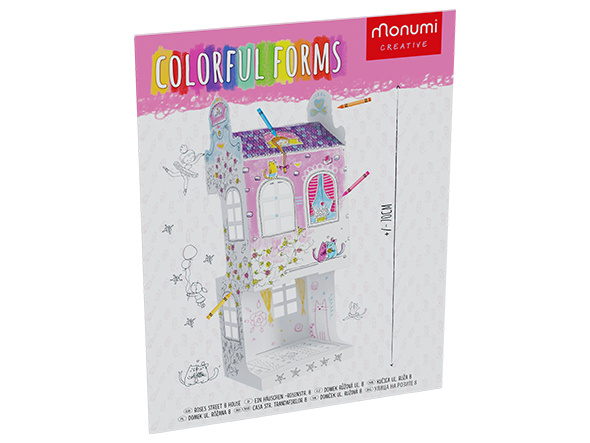 Vymalujte stěny domečku veselými barvami, abyste do růžového domečku přilákali panenky, myšky nebo jiné obyvatele. 3D omalovánky Monumi mohou být pouhým obrázkem k vybarvení, nebo mohou být začátkem velkého dobrodružství. Prostorové omalovánky jsou víc než jen zábava s pastelkami. Je to příležitost zažít s imaginárními postavami tvorbu vysněného domu, který si pak můžete vybarvit. V kreativních sadách z 3D papíru od společnosti Monumi se meze nekladou. Neexistují zde žádná omezení. Důležitá je jen představivost, kreativita a především zábava.