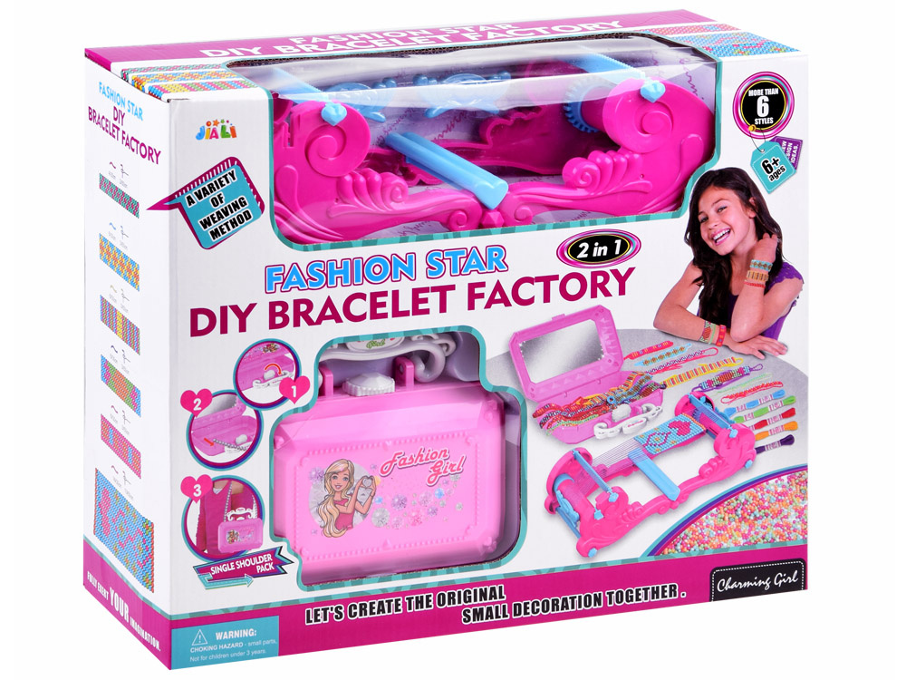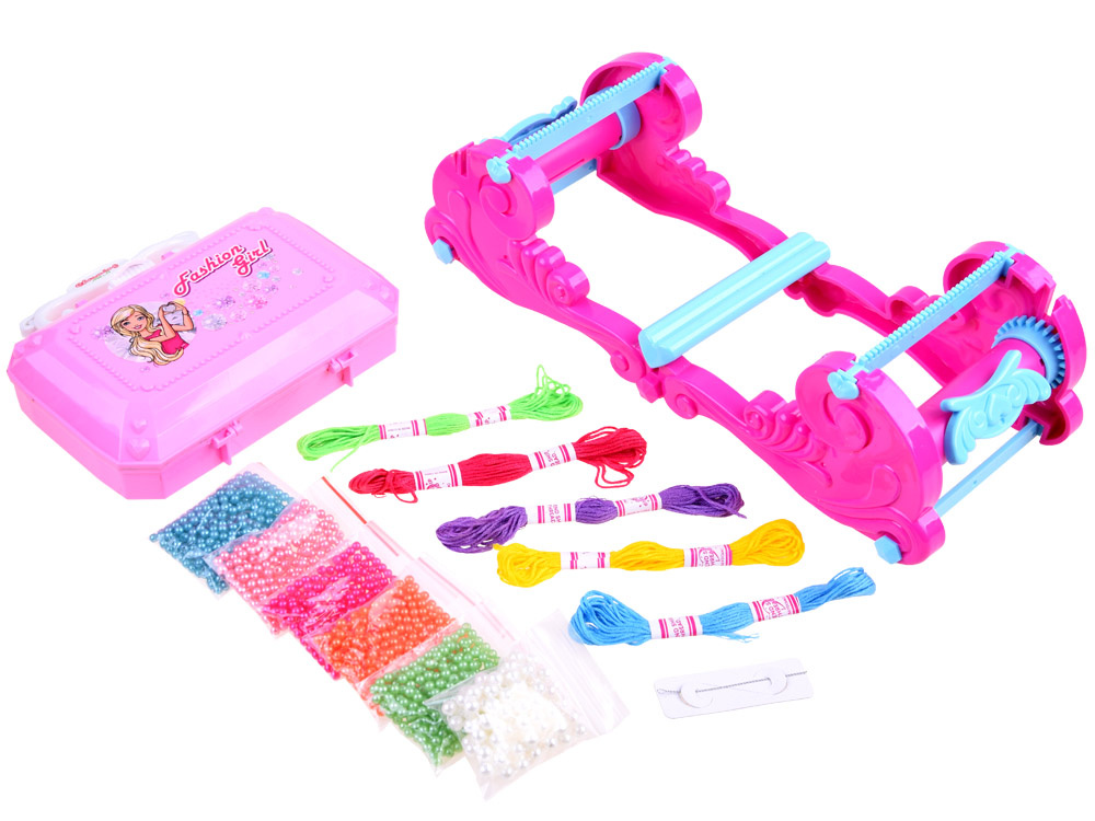 Tkalcovský stav na výrobu náramků + plastový kufr/taška je pro všechny malé talentované kostymérky, které baví umění a řemesla. Vlastnoručně vytvořené šperky v podobě náramků, korálků budou vždy nejkrásnější a nejcennější. Kromě stroje na tkaní náramků obsahuje sada také barevný moulin, perleťové korálky, šňůru perel, kterou lze použít jako řemínek na kabelku, ale dobře poslouží i jako ozdoba oděvu. Kreativní sada umožní každé dívce vyrobit si vlastní náramky s lesklými korálky, které mohou být skvělým dárkem pro maminku, sestru nebo kamarádku.