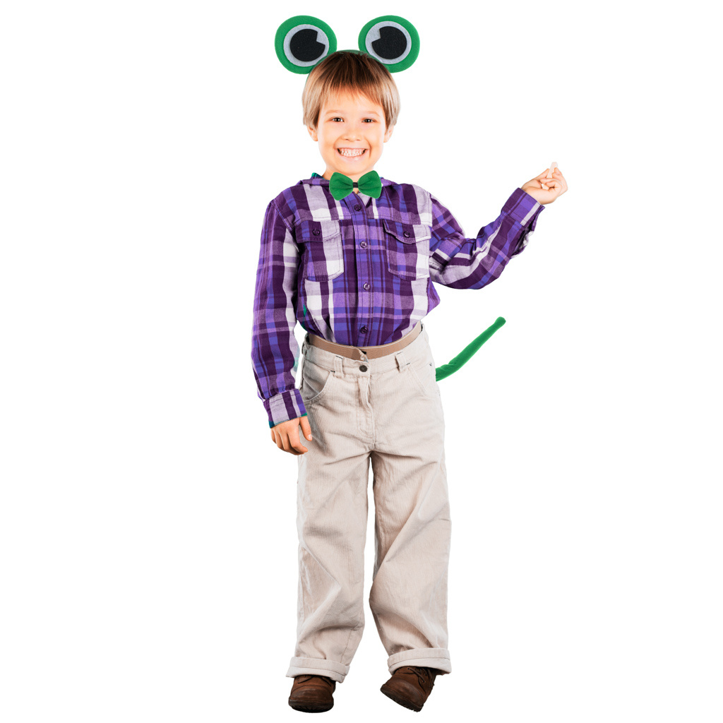 V sadě najdete zelený pásek s očima, zeleného motýlka a zelený ocásek. Všichni na oslavě jistě poznají, kdo je vaše dítě - rozkošná žabka!