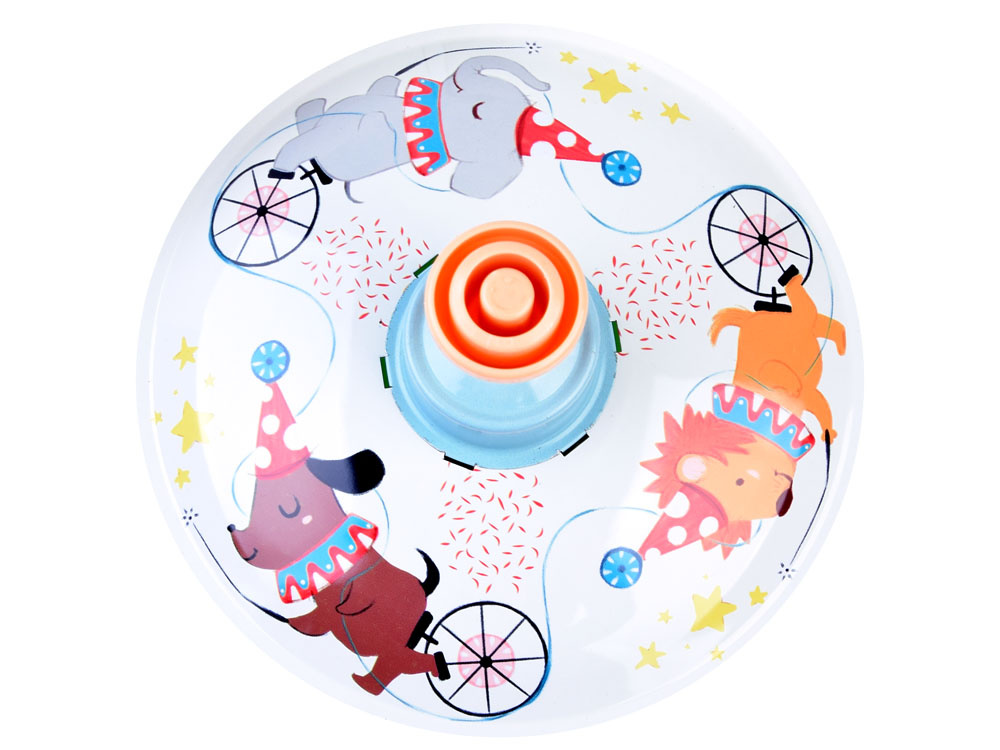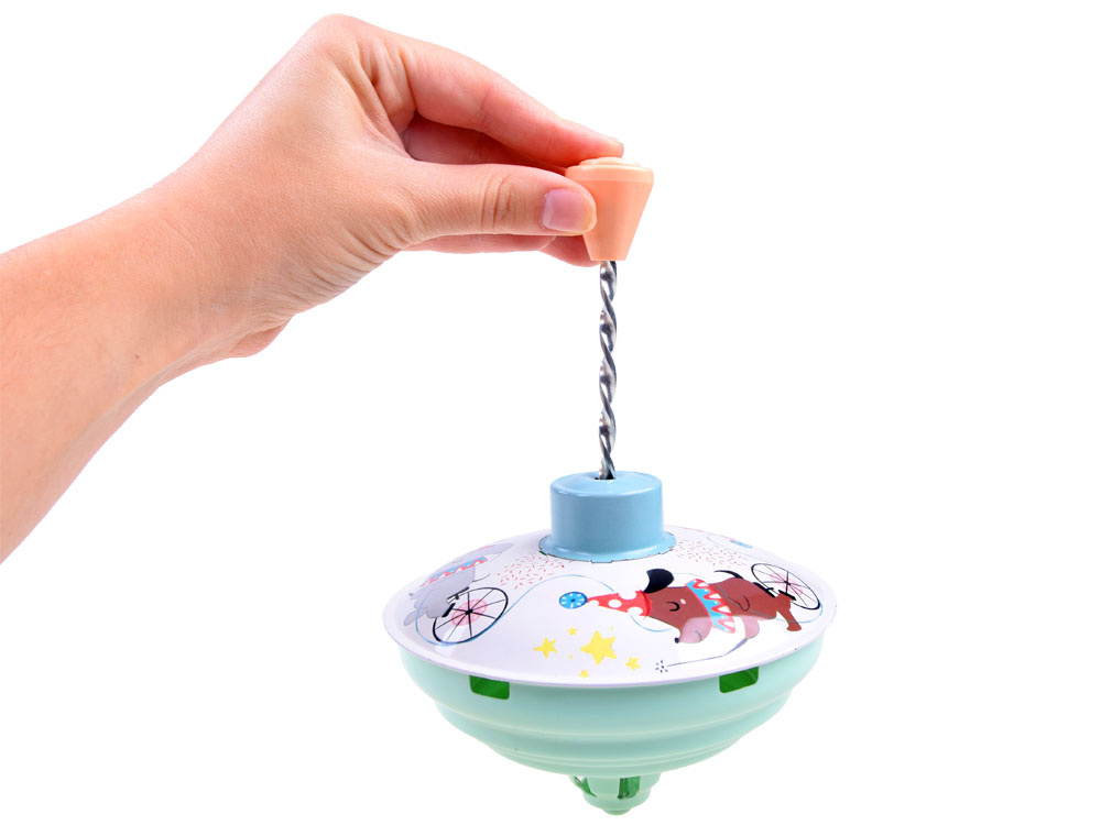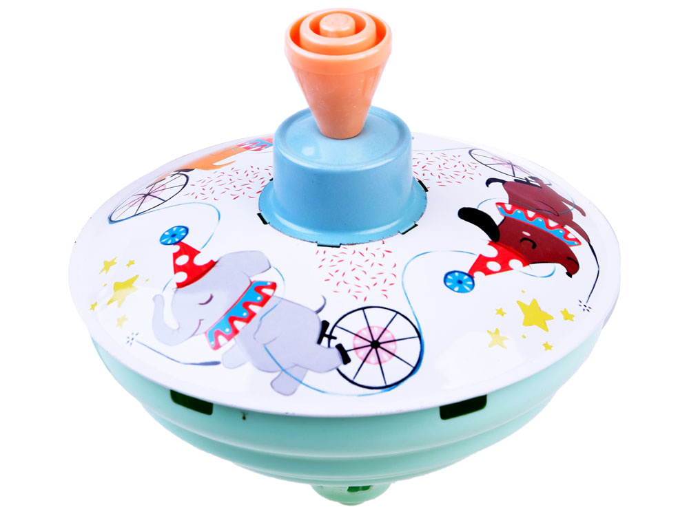 Tradiční točící se vršek je nadčasová hračka, se kterou si hráli naši rodiče, my a nyní i nejmladší generace. Kovová káča vyniká příjemnými pastelovými barvami a roztomilou grafikou zvířátek. Hračka se ovládá velmi jednoduše, stačí stisknout píst, aby se káča roztočil kolem své osy. Otáčení je doprovázeno výrazným zvukem, který přitahuje pozornost dítěte.