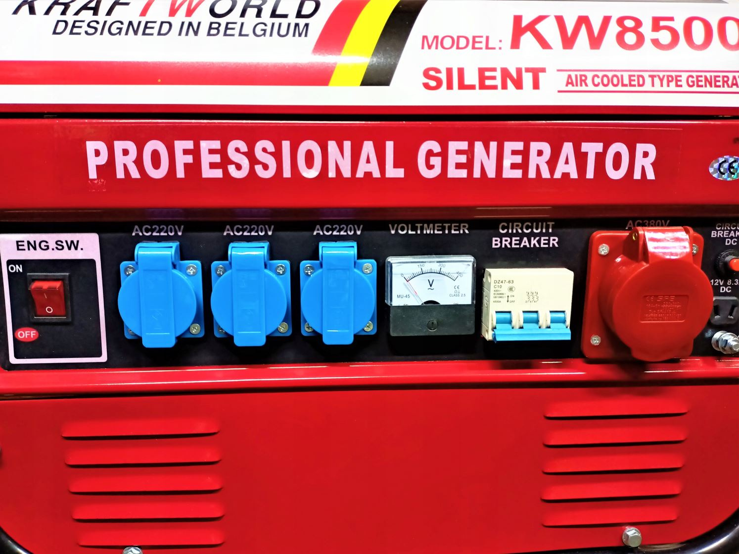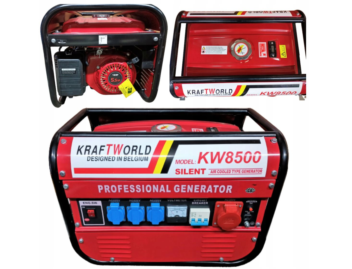 Přenosný třífázový generátor je navržen tak, aby generoval střídavý proud 220V / 380V s použitím čtyřtaktního spalovacího motoru o objemu 163 cm3 s výkonem 5,5 HP.