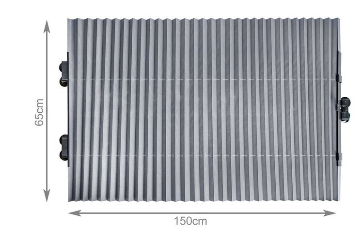 SPECIFIKACE - barva: černá, šedá; materiál: hliníková fólie; PE fólie, taft; Univerzální velikost; rozměry (délka / šířka): 150/65 cm; hmotnost: 400 g; hmotnost v balení: 434 g