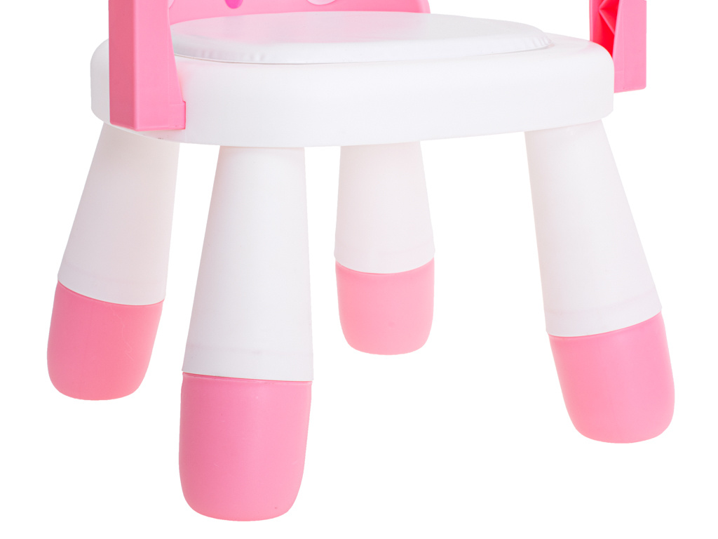 Moderní design upoutá pozornost batolete a povzbudí ho, aby jedlo ve vyhrazeném prostoru. Můžete si být jisti, že vaše dítě nebude chtít z této židle slézt. Ergonomický tvar "nutí" dítě při jídle zaujmout správný a bezpečný postoj. Králičí uši budou dokonalou oporou zad. Pohodlné sedátko s polštářkem zajistí vašemu dítěti pohodlný odpočinek. Stůl lze s úspěchem použít, když si vaše dítě hraje a vytváří svá první umělecká díla. Vymezí zónu na hraní a vy budete mít jistotu, že je vaše batole v bezpečí, zatímco vy se musíte věnovat domácím pracím. Židle roste s vaším dítětem! Malé děti rostou a mění se velmi rychle. Dvoustupňová možnost nastavení výšky židle umožňuje přizpůsobit se potřebám rostoucího dítěte. Chcete-li zvýšit výšku židle, stačí vyměnit opěrky nohou za vyšší. Kromě toho lze stůl zcela demontovat, takže dítě může sedět pouze na židli.Sada je vyrobena z vysoce kvalitního plastu, který zaručuje dlouhou životnost. Robustní konstrukce a pohodlné sedadlo potěší rodiče i batolata. Celá věc se snadno čistí. Židli stačí otřít vlhkým hadříkem nebo ji lze v případě většího znečištění umýt pod tekoucí vodou. Židličku lze snadno složit a je lehká, takže si ji můžete vzít s sebou na návštěvu k babičce nebo na dovolenou. úspěšně nahradí velké a těžké krmicí židle.