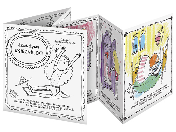Seznamte se s princeznou Matyldou. Jak vypadá den princezny? Jak tráví volný čas, jak se stará o své vlasy a jak začíná svůj den? Tohle je Matylda, princezna, se kterou strávíte celý den. Vneste do Matyldina života barvy. Čtěte si sami nebo s rodiči, před spaním a na noc. Monumiho harmonika má obrázky, ale je na vás, abyste si je vybarvili.