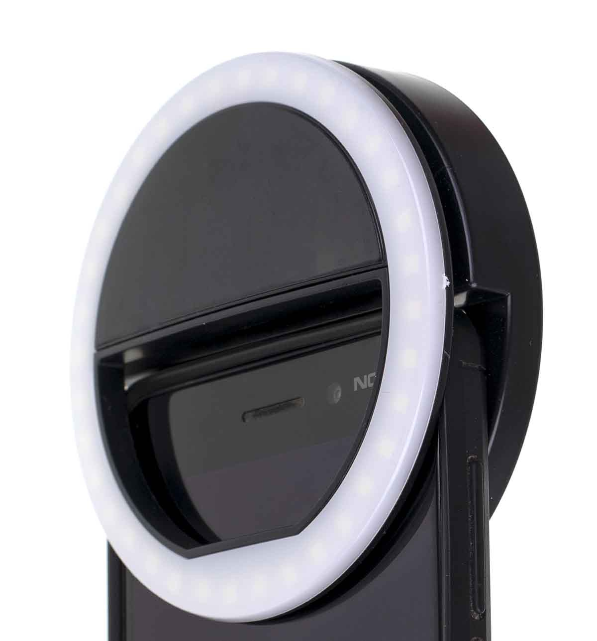 Selfie lampa s klipem. Dobře poslouží při focení nebo natáčení chytrým telefonem. Moderní design lampy ve tvaru prstence umožňuje rovnoměrné osvětlení obličeje nebo jiného předmětu. jej snadno připevnit na jakýkoliv telefon. Slouží také jako přenosná a lehká svítilna, kterou lze namontovat na mnoho míst .Má 36 Led diod pro zlepšení osvětlení fotografie. Lze nastavit ze tří úrovní jasu.