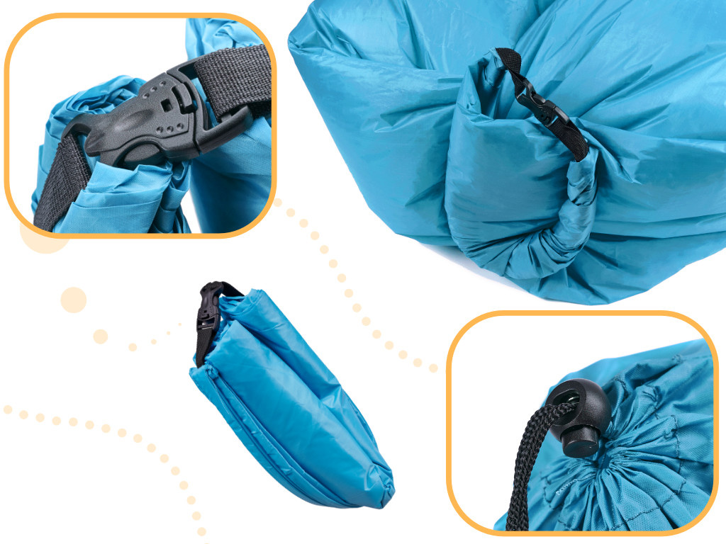 Rozložení trvá doslova jen několik sekund a nepotřebuje k tomu čerpadlo. Jedním efektivním pohybem proti větru se naberte vzduchu, srolujte se v otvoru a zapněte patentky. Pohovka se naplní vzduchem a promění se v mimořádně pohodlnou matraci.