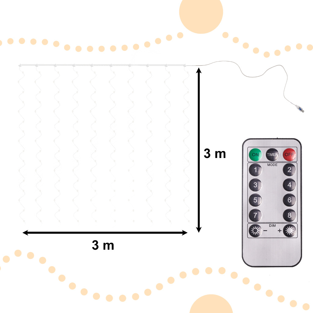 LED Světelný závěs 3x3m 300 LED studená bílá
