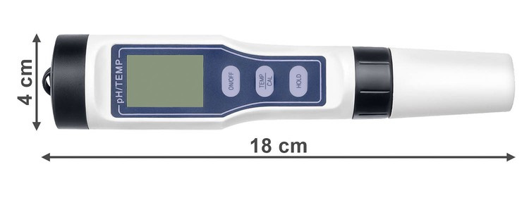 • SPECIFIKACE - vodotěsné pouzdro; současné měření pH a teploty; stupnice: pH: 0,00-14 pH; přesnost: ± 0,01 pH; rozlišení měření: 0,01 pH; Teplota: 0,19 C-60,0 °C nebo 32,0-140,0 F; přesnost: ± 0,5 °C; rozlišení měření: 0,1 °C; kompenzace teploty kapaliny (ATC); napájení: baterie: 3x1,5V; kalibrace: 3-bodová - automatická; automatické vypnutí po 5 minutách; rozměry: 18/4/4 cm; hmotnost: 0,091 kg; hmotnost s obalem: 0,296 kg.