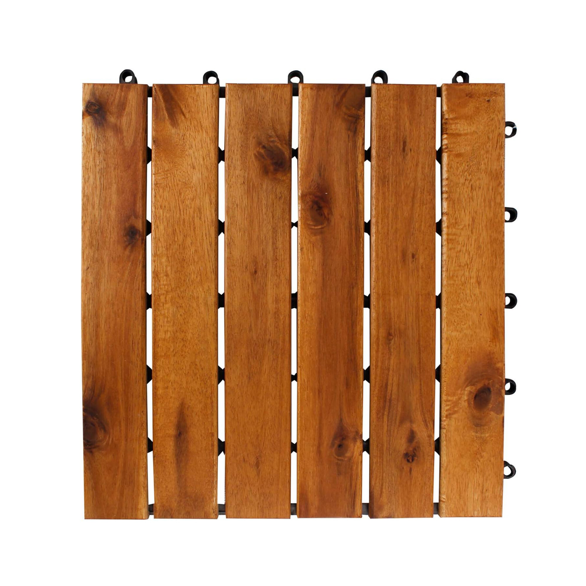 Podlahové dlaždice jsou vyrobené z kvalitního akáciového dřeva, což je tropické tvrdé dřevo, které je odolné proti vlivům počasí a má dlouhou životnost.