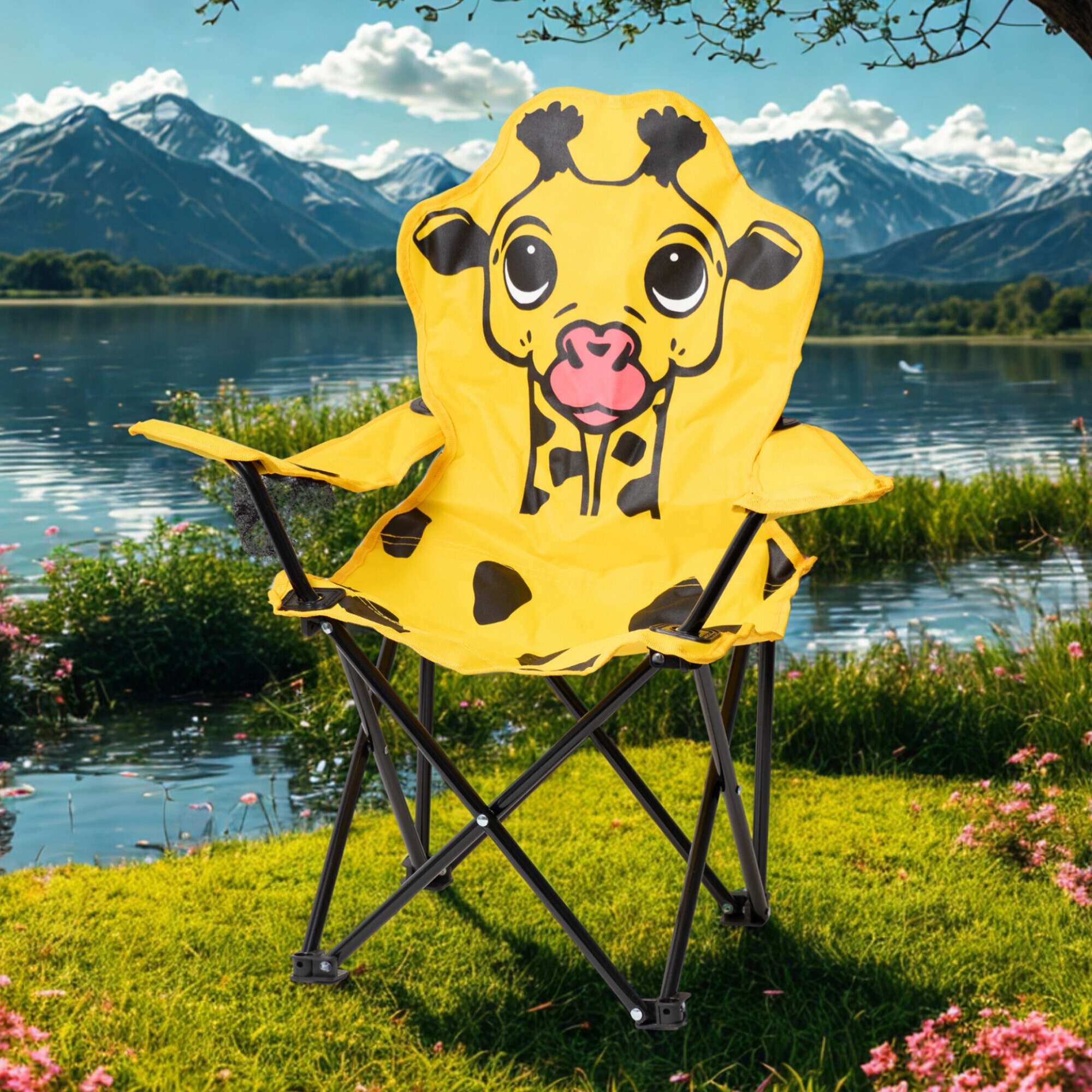 Skládací křesílko s dětským motivem si vaše děti zamilují. Je vyrobené z kovové rozkládací konstrukce s polyesterovým potahem ve tvaru zvířátka.