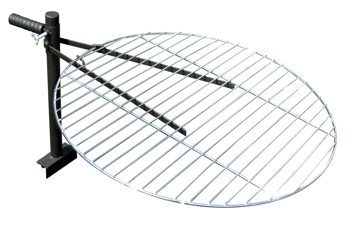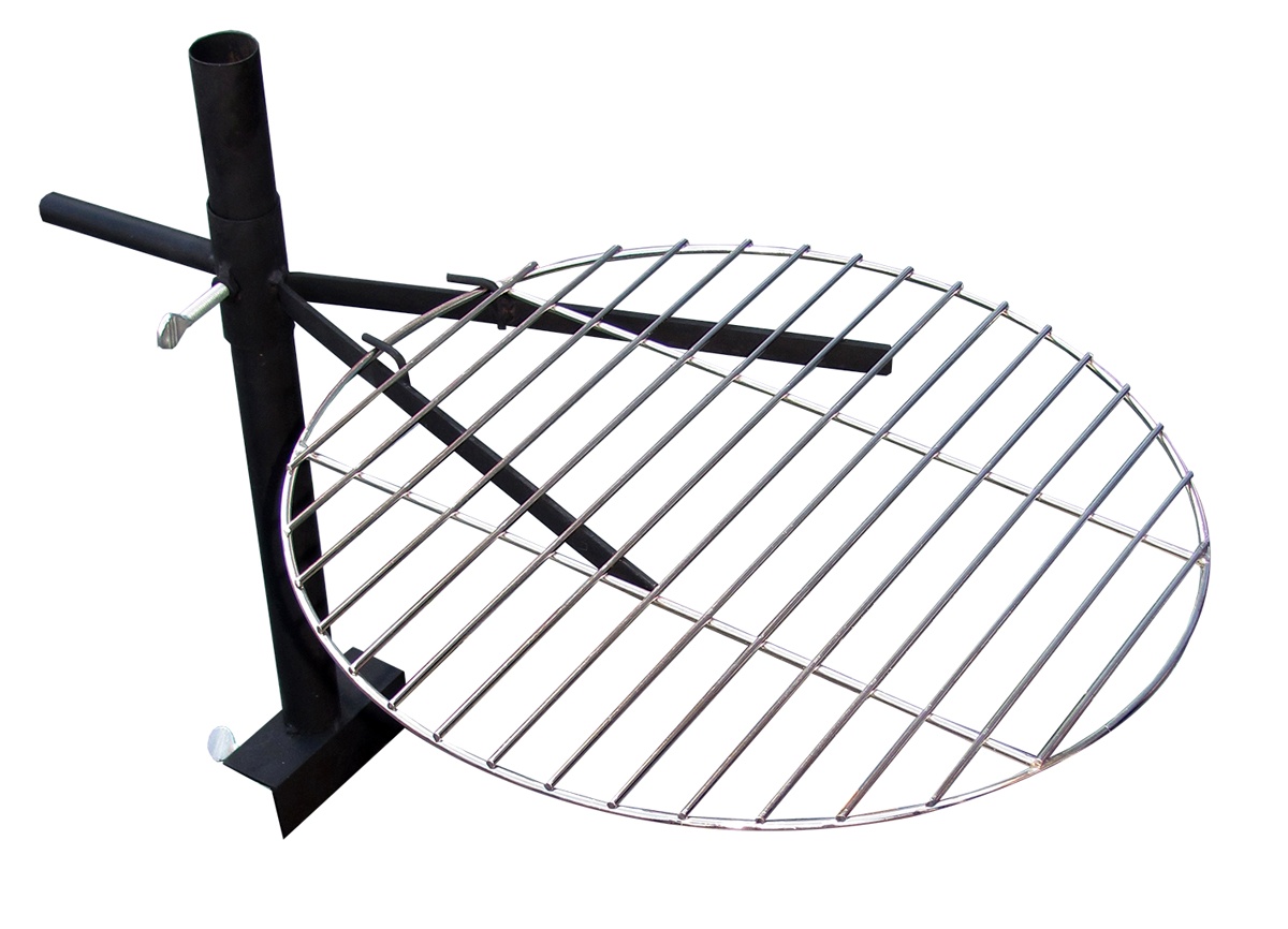 Otočný grilovací rošt na ohniště s polohovacím držákem o průměru 40 cm. Praktický rošt pro grilování masa a zeleniny, který je možno snadno vytáčet mimo prostor ohniště.