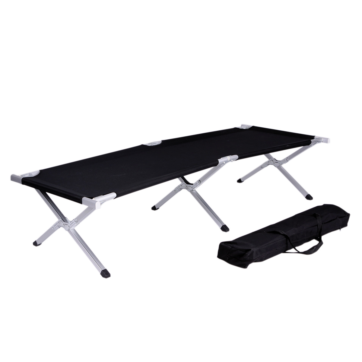 Kempingová skládací postel se dá velice snadno poskládat do malého obalu – tašky s popruhem přes rameno a takto přenést, naložit do auta nebo uskladnit.