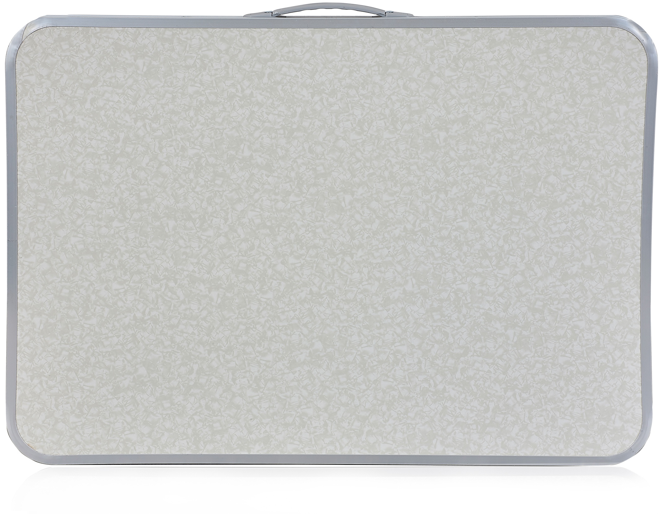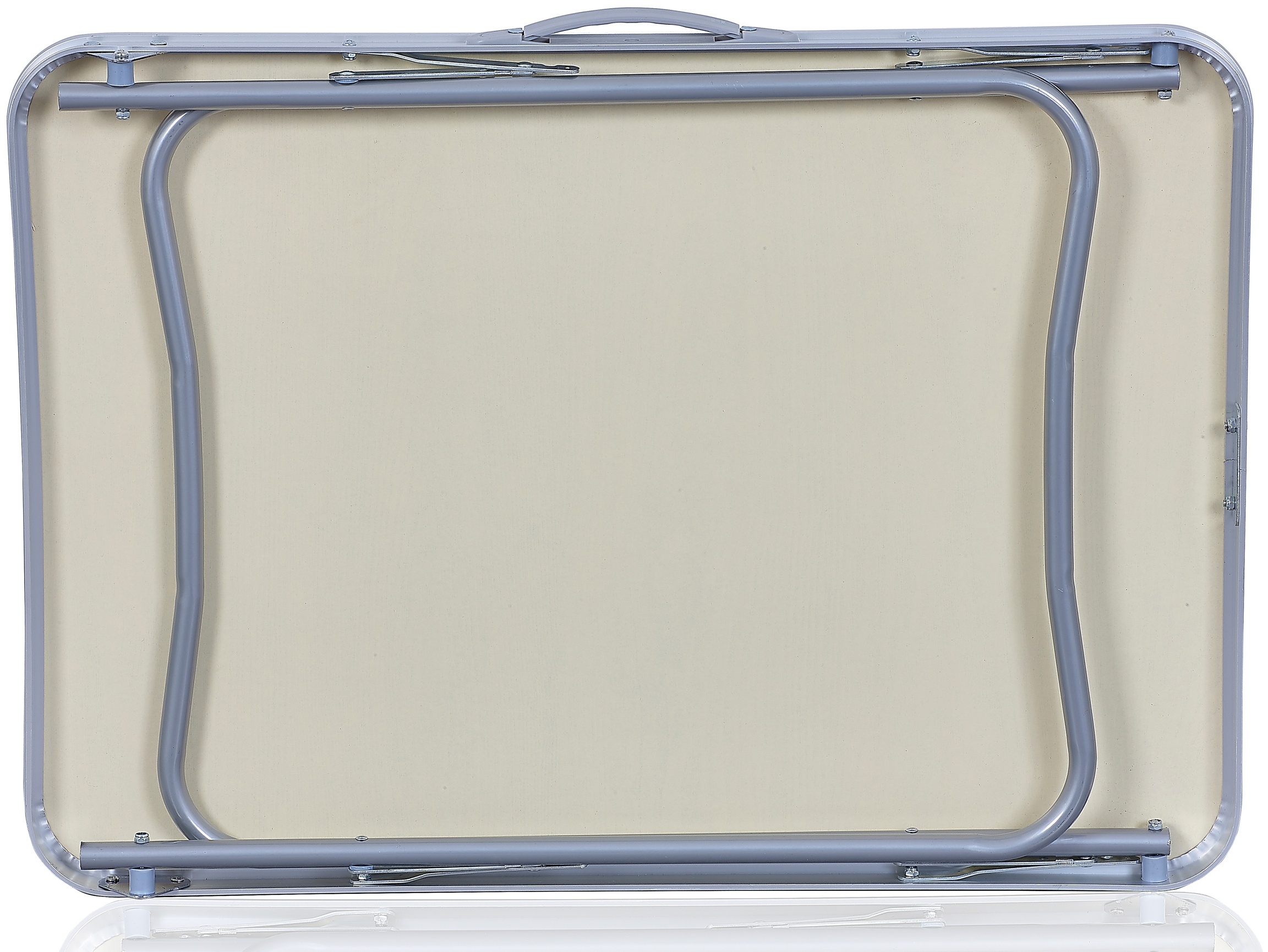 - Ve sbaleném stavu je stůl snadno transportovatelný v podobě ploché desky s uchem