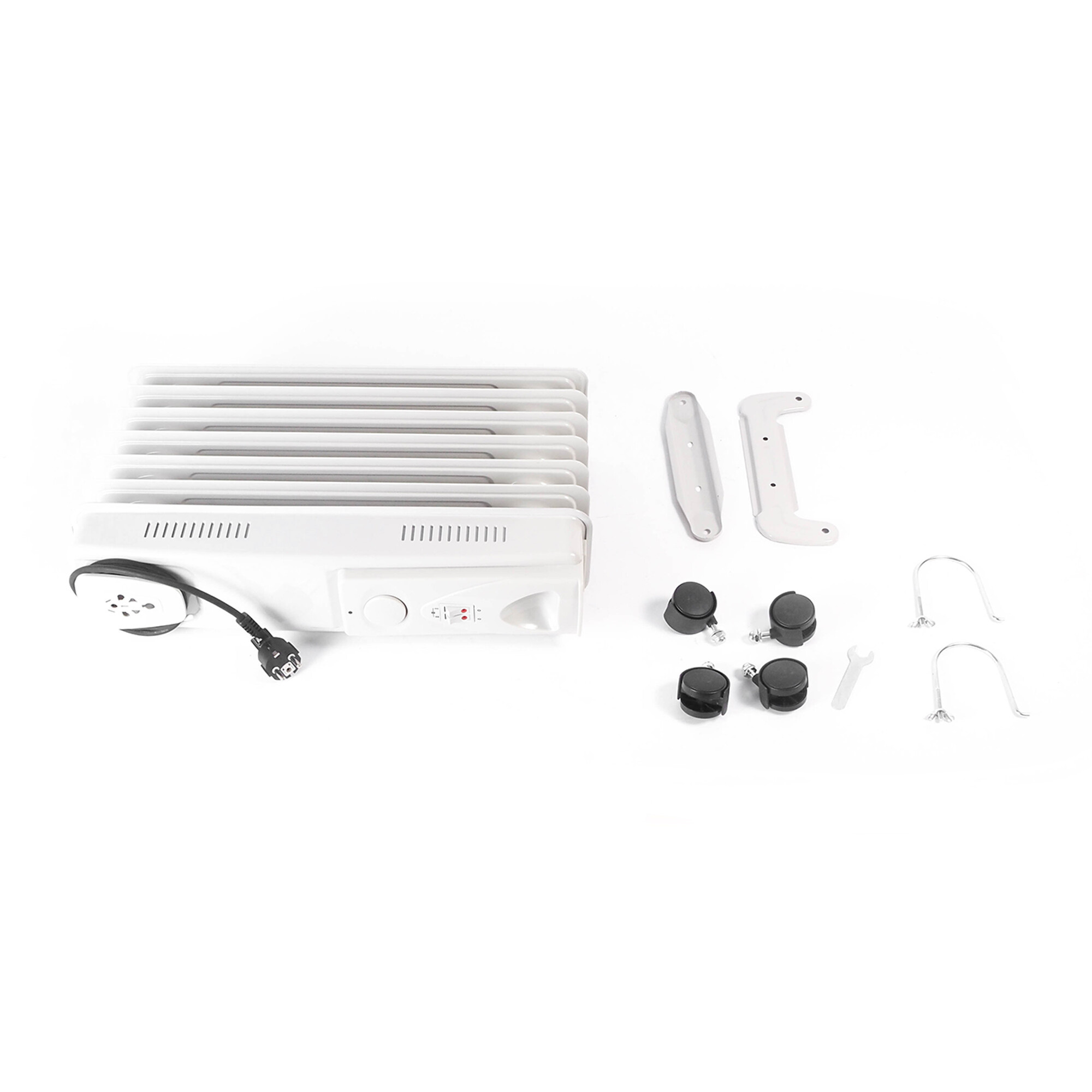 Olejový Radiátor je navržen s ohledem na praktičnost. Je vybaven navíjením kabelu, což usnadňuje jeho skladování a zabraňuje zamotání kabelu. Kolébkový spínač a kontrolky zajišťují jednoduché ovládání a přehled o aktuálním stavu radiátoru. Sedm lamel o velikosti přibližně 120 x 500 mm zajišťuje rovnoměrné rozložení tepla po celé místnosti.