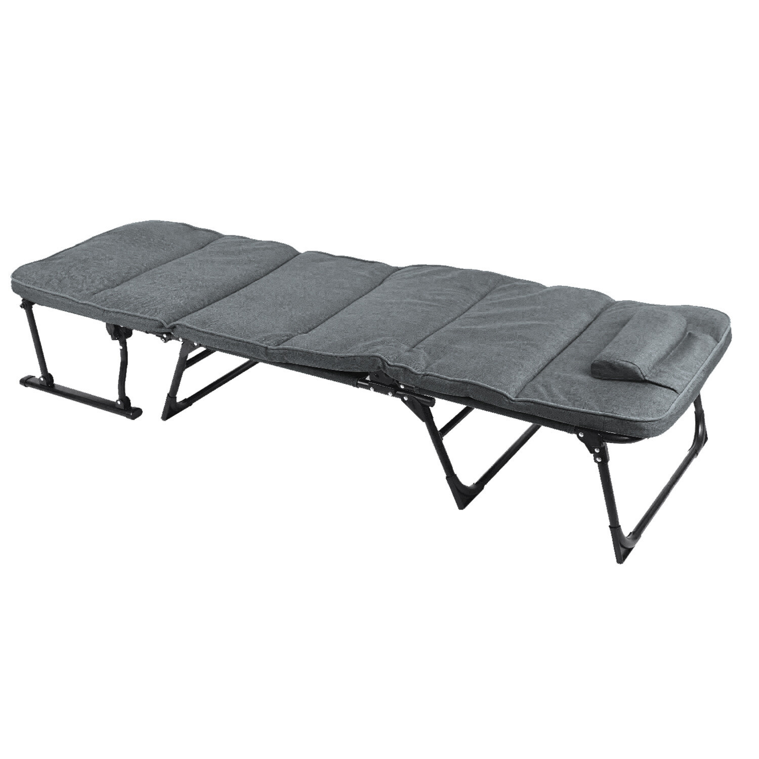 Potah lehátka je vyroben z odolného polyesteru Oxford 600D, který je známý svou pevností a odolností vůči opotřebení. Tento materiál je navíc snadno udržovatelný, což zajišťuje, že vaše lehátko bude vypadat jako nové i po dlouhodobém používání. Dodatečné polstrování o tloušťce cca 3 cm a přiložený polštář zajišťují, že se budete cítit pohodlně a uvolněně, ať už si lehátko nastavíte jakkoli.