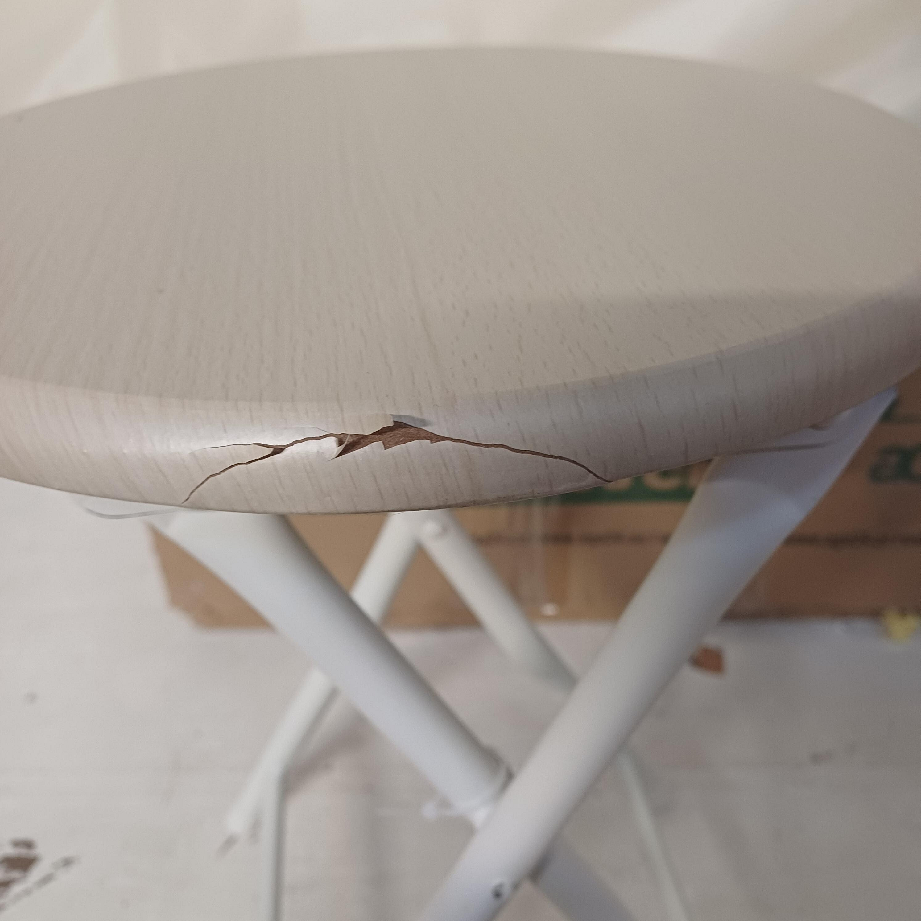 Výrobek vykazuje kosmetické vady v podobě oděrek a částečně odlupující se dýhy. Tyto nedostatky nemají vliv na funkčnost židle.