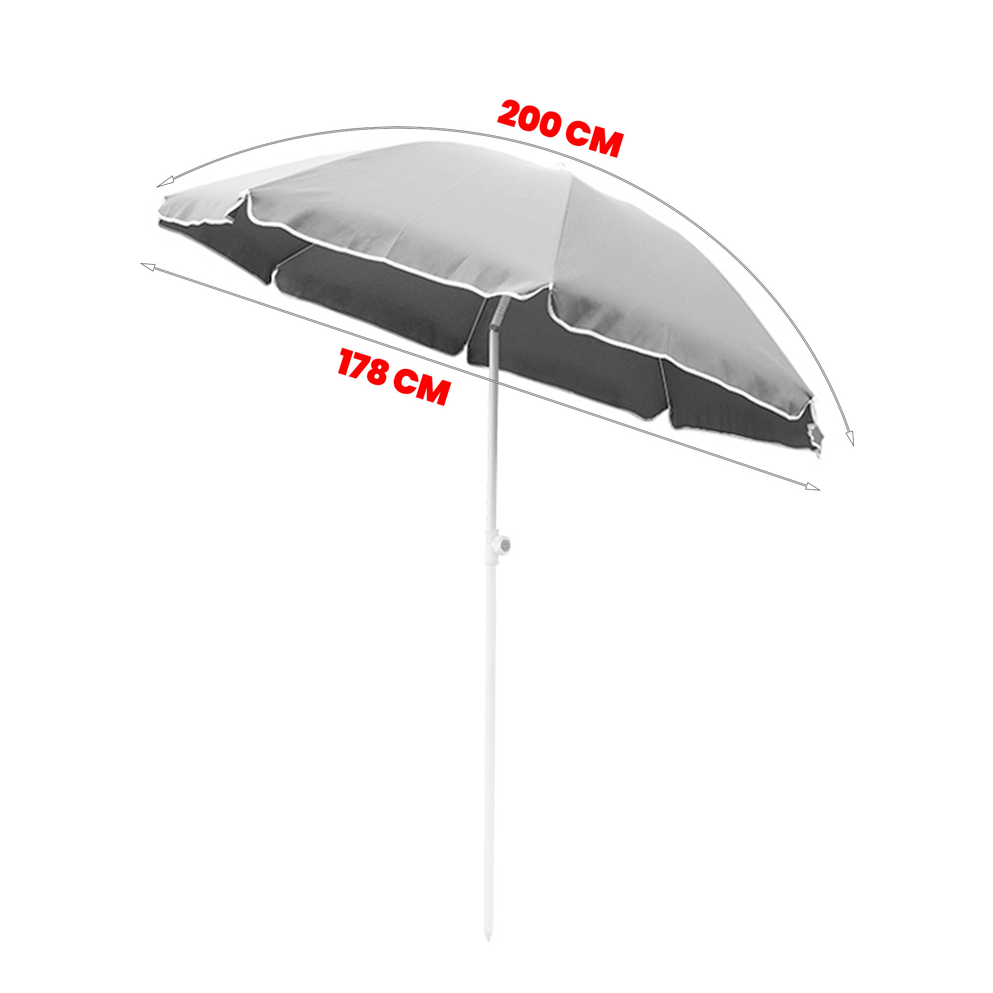 Klasický zahradní slunečník s pevnou konstrukcí a kvalitním potahem, vyrobeným z odolného polyesterového materiálu.