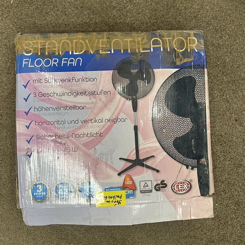 Tento ventilátor je plně funkční, avšak kryt je poškrábaný a obal je poškozený.