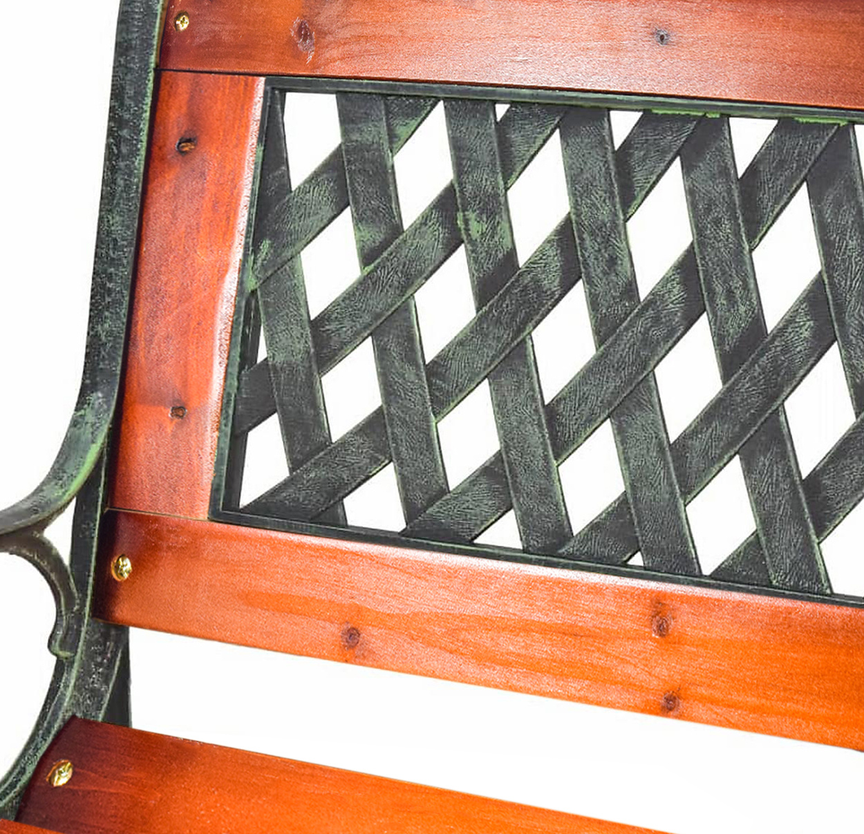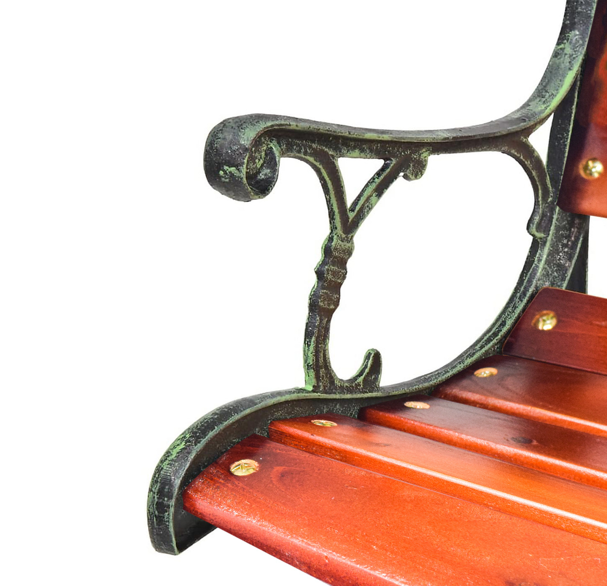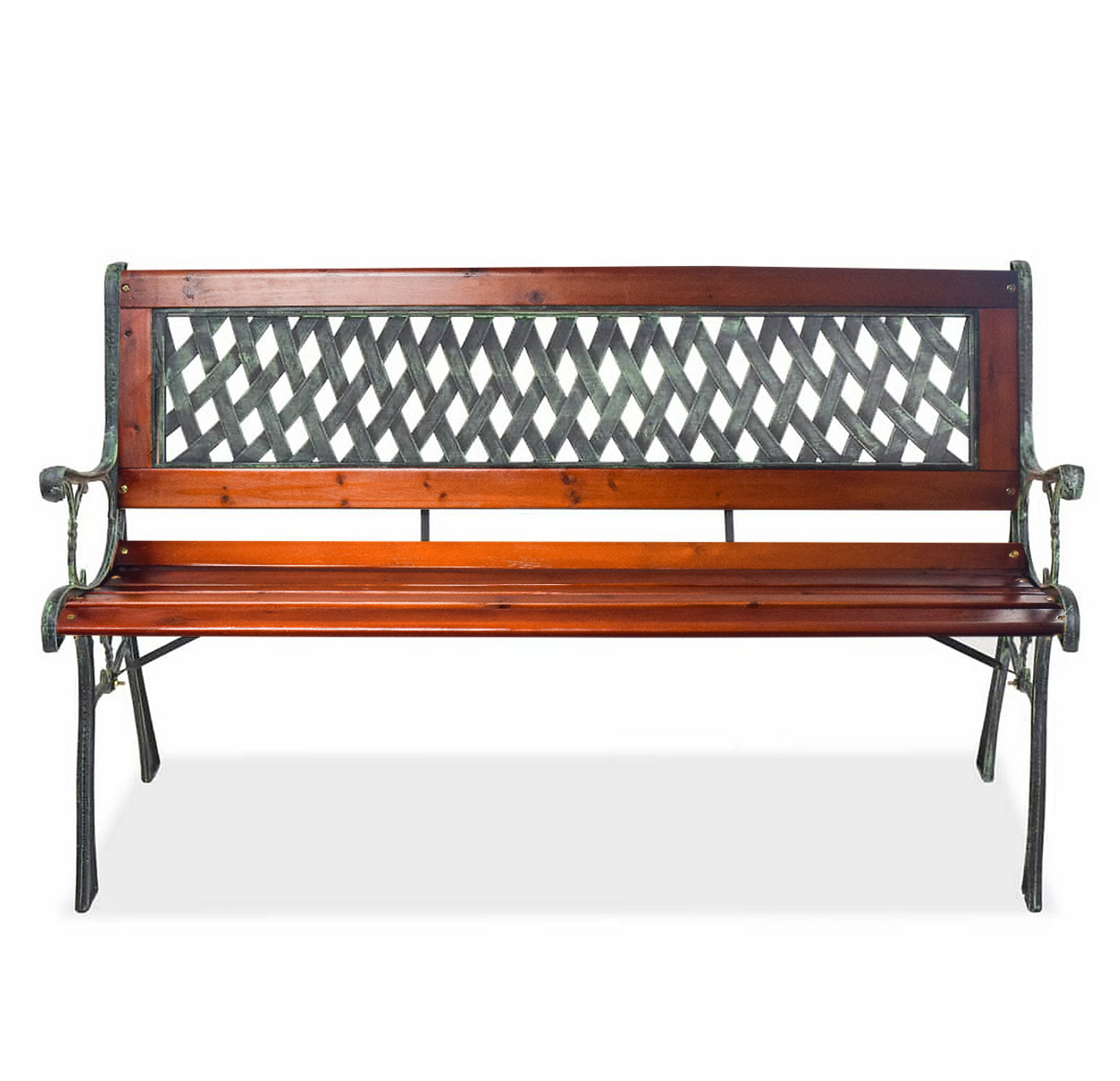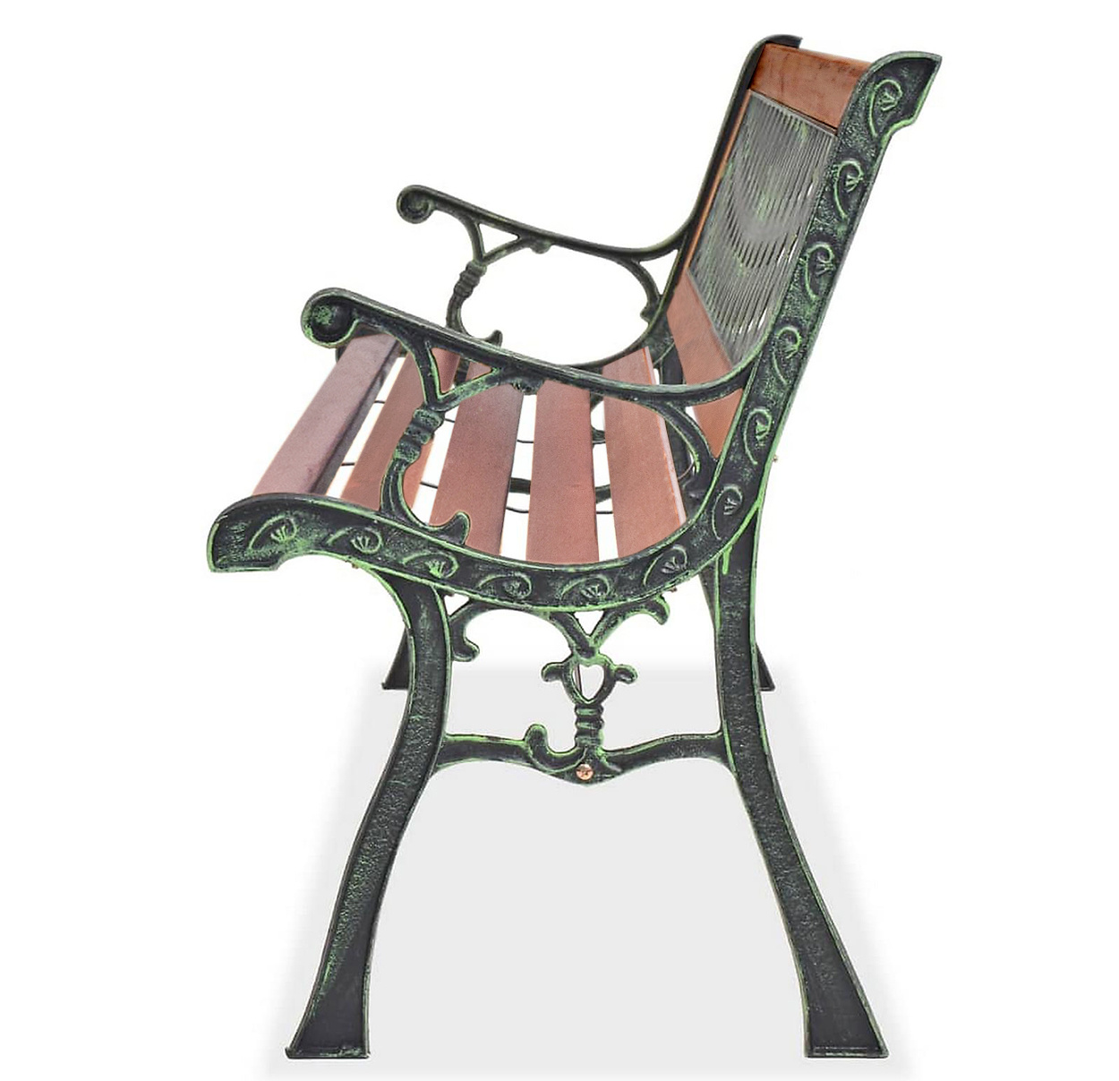 Pevná litinová konstrukce, která je doplněna o dřevěné latě. Nosnost lavice 150 kg.
