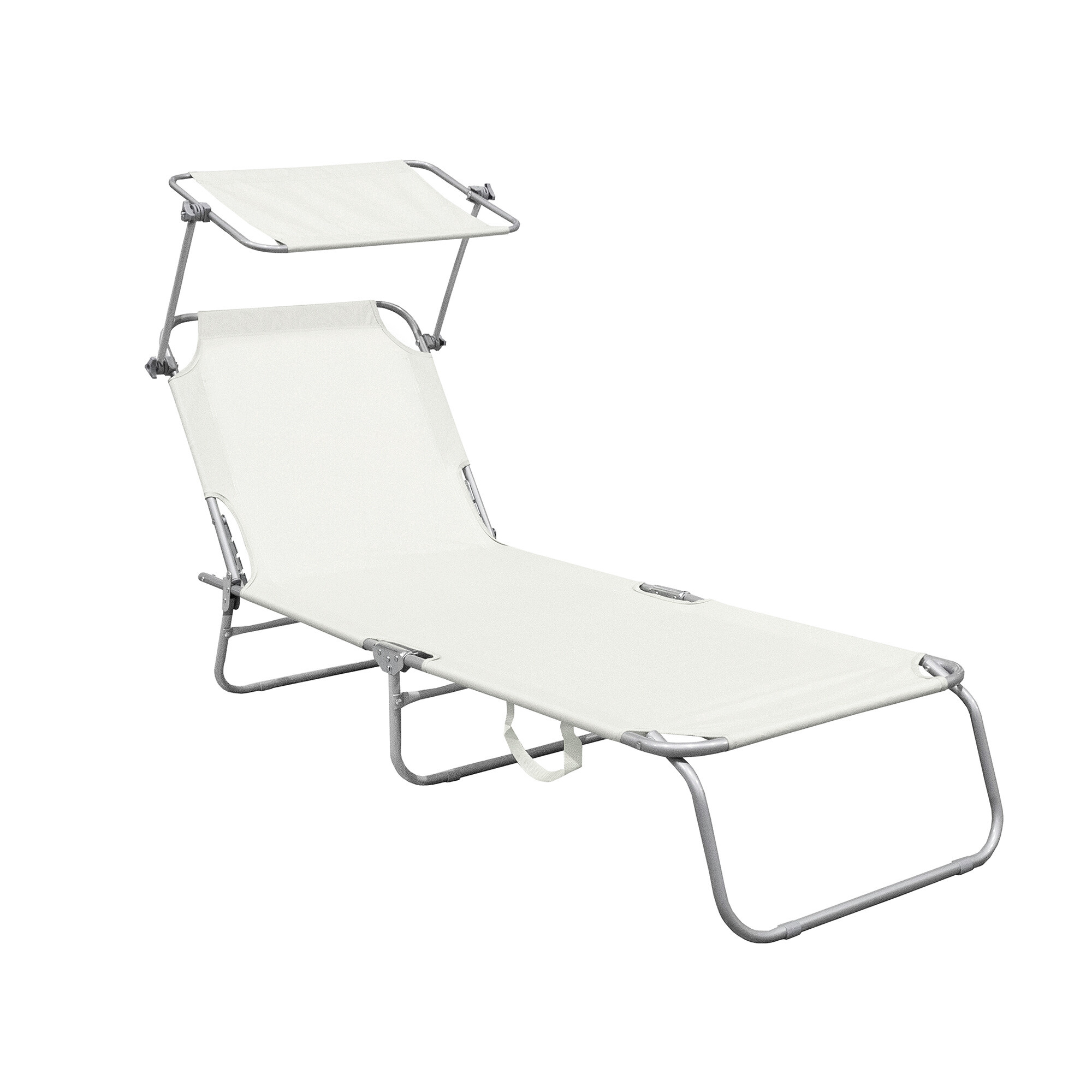 Skládací zahradní lehátko se zpevněnou ocelovou konstrukcí, v moderním designu, vhodné pro zahrady, na kempování či pláže.