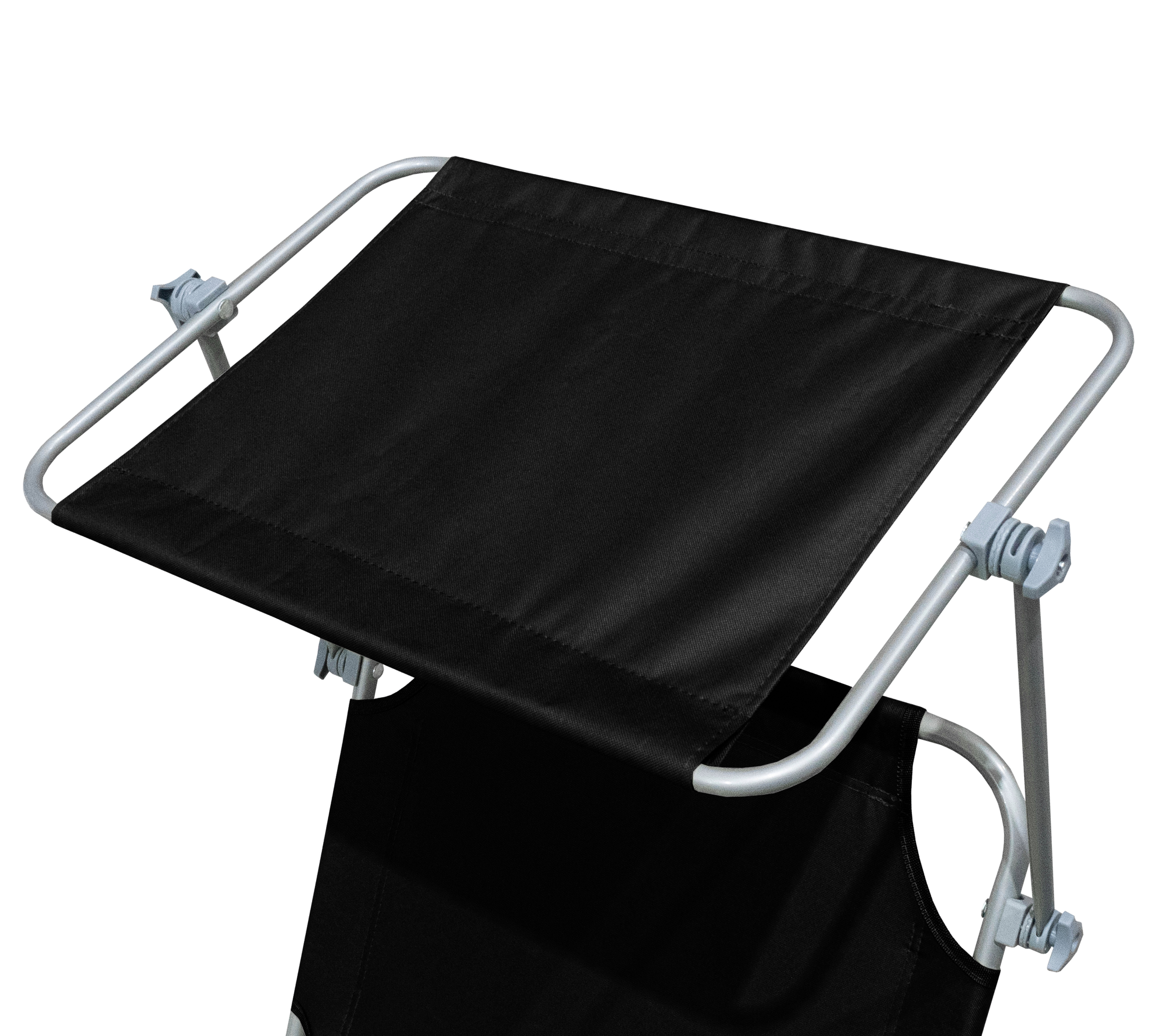 Skládací zahradní lehátko se zpevněnou ocelovou konstrukcí, v moderním designu, vhodné pro zahrady, na kempování či pláže.