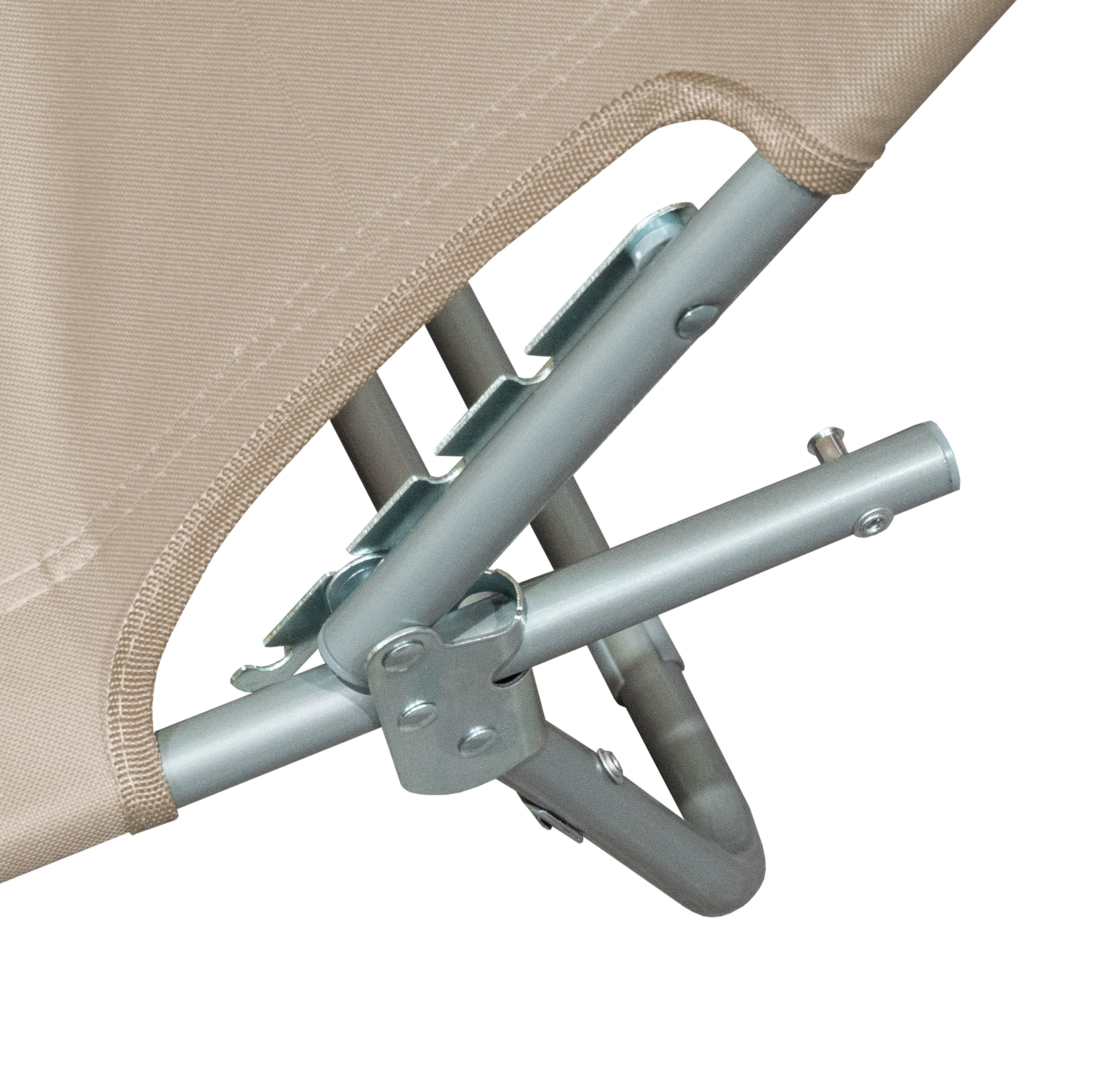 Skládací konstrukce lehátka umožňuje jednoduché rozložení i složení. Ocelové trubky o průměru 18 mm zajišťují vysokou odolnost, pevnost, stabilitu a nosnost až 150 kg.